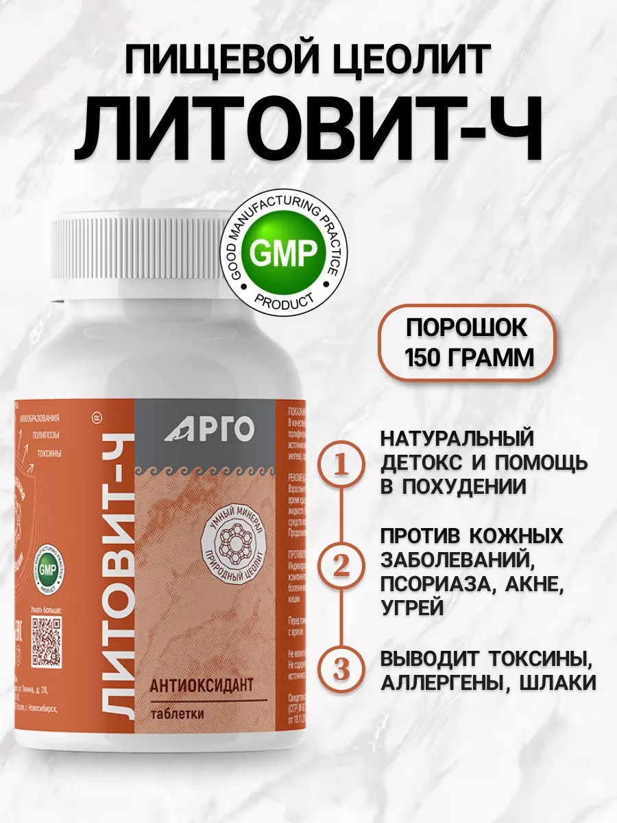 Litovit-Ch is intended for the removal of toxic substances. It is used in the complex therapy of neoplasms. Normalizes mineral metabolism; removes radioactive, toxic substances and metabolic products from the body. Properties: in the complex therapy of body weight disorders; in diseases of the upper gastrointestinal tract (gastritis, gastroduodenitis, gastric ulcer and duodenal ulcer outside of exacerbation); in benign neoplasms (mastopathy, uterine fibroids, etc.); 1 tablet twice a day during meals, chew and wash down with 0.5-1 glass of liquid. Take Litovit-Ch 1.5-2 hours apart from taking medications. Duration of treatment is 1 month. Contraindications: Gastric ulcer and duodenal ulcer in the acute stage, individual intolerance to the components.