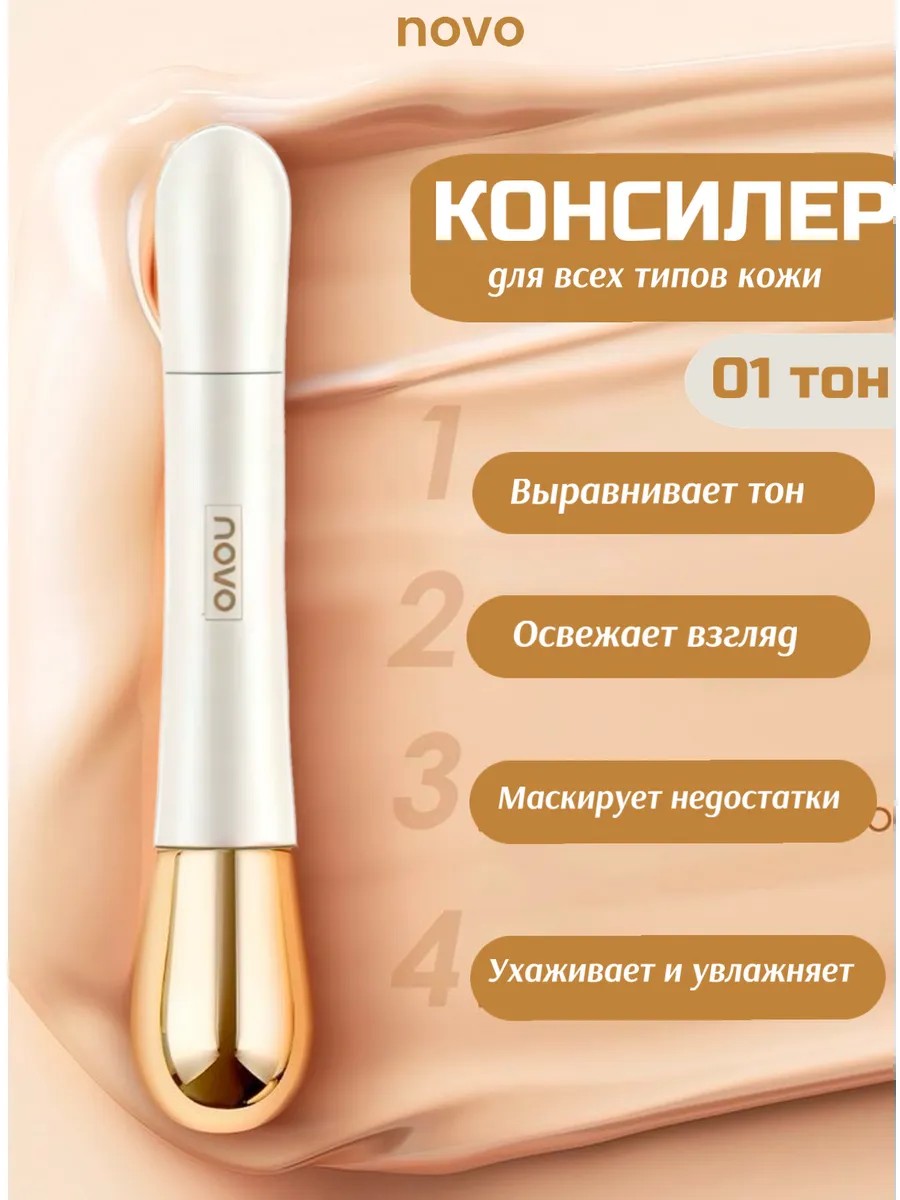 Консилер-корректор NOVA - это незаменимый помощник для безупречного макияжа. Его плотная кремовая текстура легко наносится и идеально маскирует несовершенства кожи, такие как прыщи, угри и синяки под глазами. Водостойкая формула обеспечивает стойкость макияжа в течение всего дня. Консилер NOVA подходит для всех типов кожи и доступен в различных оттенках, чтобы вы могли подобрать идеальный вариант для своего тона лица. Создавайте безупречный образ с NOVA!