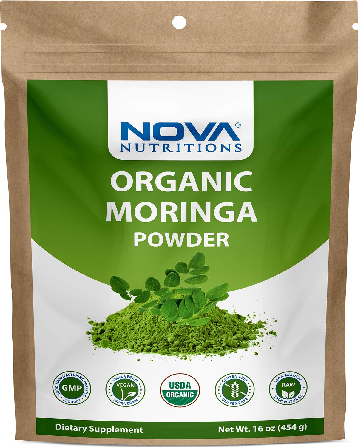 Nova Nutritions Certified Organic Moringa Powder 16 OZ (454 gm) - Superfood green powder