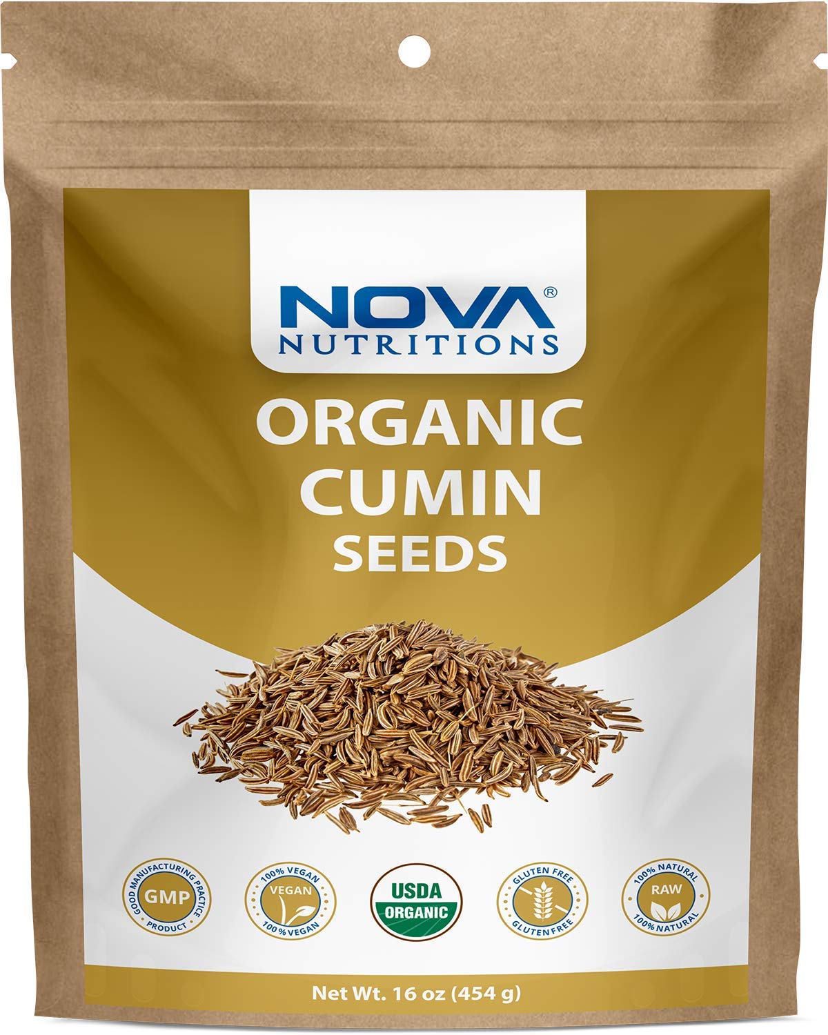 Nova Nutritions Certified Organic Whole Cumin Seeds 16 OZ (454 gm)