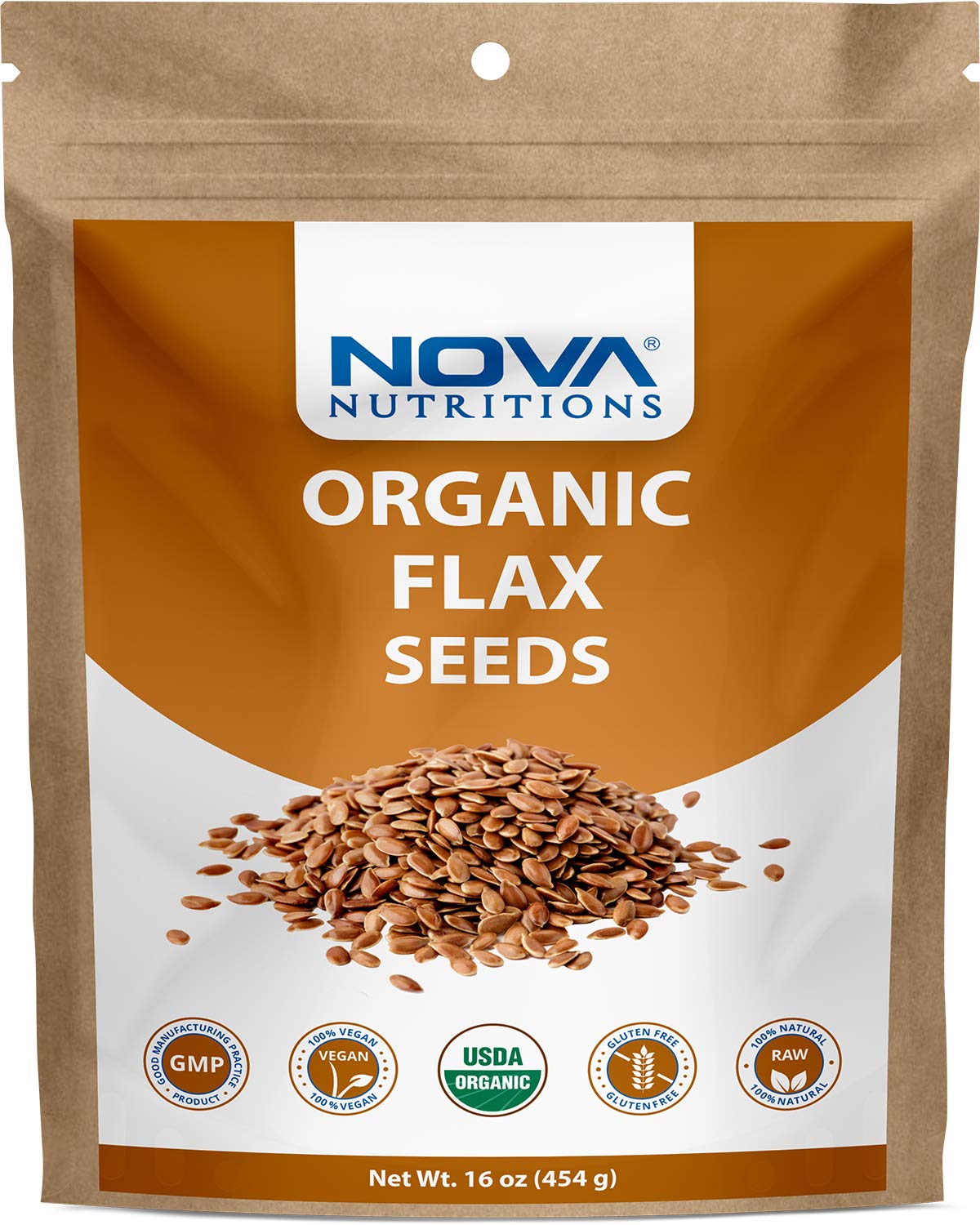 Nova Nutritions Certified Organic Whole Flaxseeds 16 OZ (454 gm)