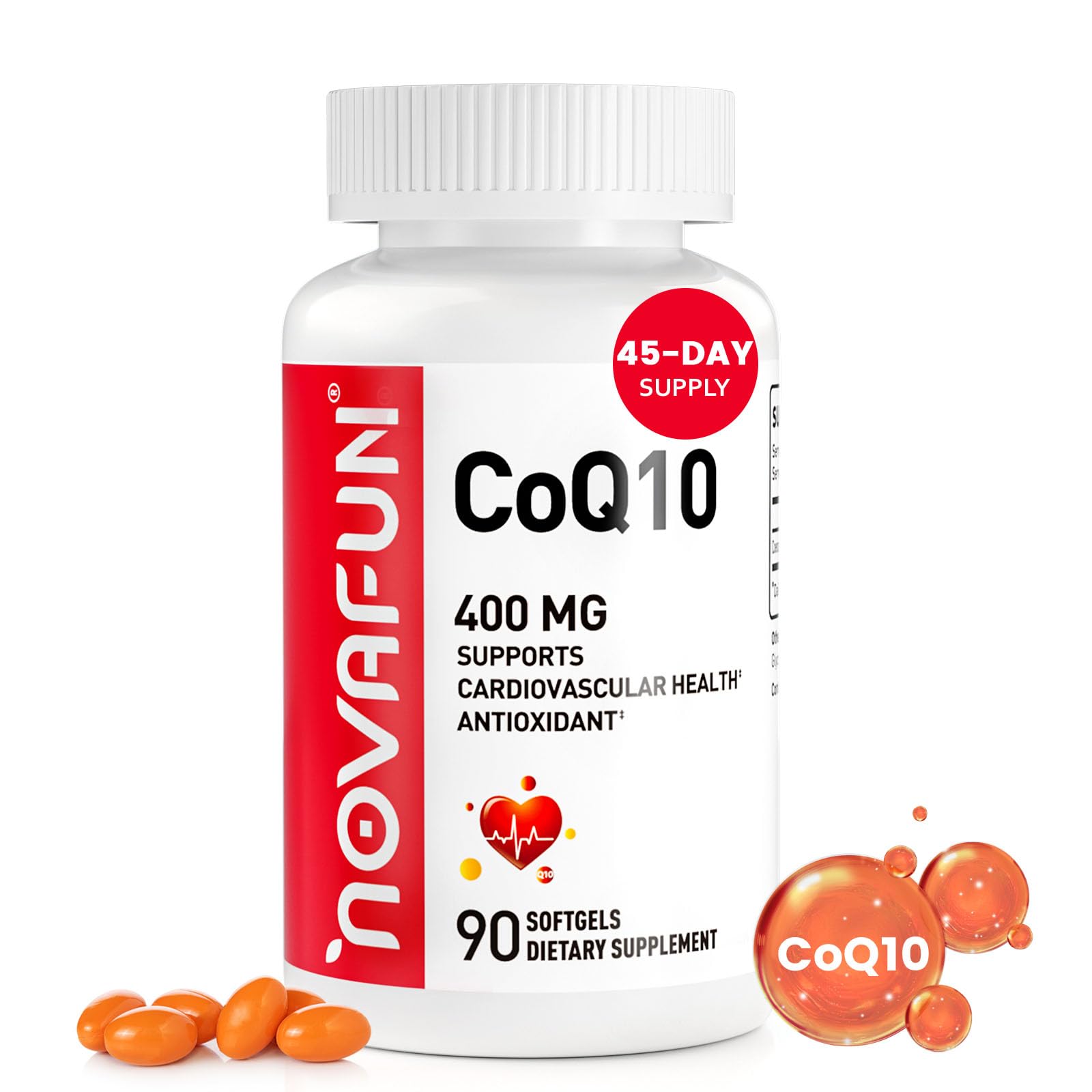 Novafun CoQ10-400mg-Softgels with Coconut MCT Oil High Absorption Coenzyme Q10 Supplement for Heart Health & Energy Production 90 Count 45 Day Supply