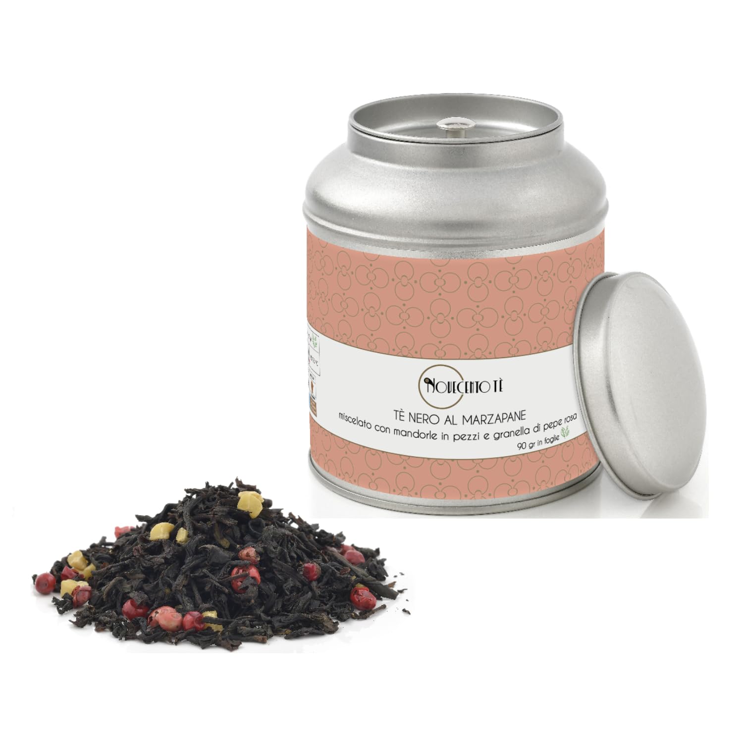 NOVECENTO TE' NOVECENTO TE' single-origin and flavored tea blends, infusions, and herbal teas represent a product of exceptional quality. The choice of ingredients for each blend is particularly careful and selective, ensuring that the final result in the cup becomes a truly unique beverage to be enjoyed at any time of day, making it an exclusive experience to be savored. THE LOGO COLLECTION - 90-gram Metal Tin The LOGO collection under the NOVECENTO TE' brand features meticulous attention to detail and refinement in its outer packaging, while maintaining the brand's distinctive character through the clarity and simplicity of its design. The metal tin contains 90 grams of loose-leaf tea. In this version, the tin features a practical and useful inner lid to preserve the flavor, ensuring the blends stored inside retain their aroma. The tin also makes a perfect gift for any occasion! MARSPAPER BLACK TEA A fantastic black tea with the typical fragrance and aroma of delicate roses so prized in the Middle East, infused here with delicious pieces of marzipan. In the Middle Ages, marzipan, also known as angel bread, was an exquisite dessert reserved for a select few. The incomparable flavor of this delicious paste of almonds, sugar, rosewater, and select spices pairs perfectly with aromatic black tea, transporting you to the East at sunset. "Marzipan Black Tea": a blend of tea, fruit, chocolate, and spices in both loose and chopped forms. The metal tin contains 90 grams of loose leaf tea. Blended and packaged in Germany (90 grams). Tea origin: Sri Lanka. INGREDIENTS Black tea 84 , almond pieces, chocolate chips (sugar, ground cocoa beans with cocoa butter, cocoa powder, emulsifier soy lecithin), flavourings, pink peppercorns.Novecento Tè Feuilles de thé noir au massepain - 90 Gr Thé noir, massepain, amandes, poivre rose Mélange de thé noir, massepain, amandes et épices dans une boîte métallique en vracDESCRIPTION DU PRODUIT DESCRIPTION DU PRODUIT NOVECENTO TE' Les mélanges de thés d'origine unique ou aromatisés ou les infusions et tisanes de la marque NOVECENTO TE' représentent un produit d'un haut standard de qualité. Le choix des ingrédients avec lesquels sont préparés tous les mélanges est particulièrement soigné et sélectif, garantissant que le résultat final dans la tasse puisse se transformer en une boisson vraiment originale à déguster à tout moment de la journée, ce qui en fait un moment exclusif pour être décidé pour eux-mêmes. LA COLLECTION LOGO - Boîte métal 90 grammes La collection LOGO sous la marque NOVECENTO TE' présente un soin et un raffinement particuliers dans l'emballage de l'emballage extérieur, tout en réservant toujours cette reconnaissabilité liée à la clarté et à l'essentialité de la décoration. 90 grammes de produit en feuilles sont stockés à l'intérieur de la boîte métallique. Dans cette version, la boîte est dotée d'un bouchon interne pratique et utile pour conserver le goût, afin que les mélanges stockés à l'intérieur puissent toujours conserver leur arôme inchangé. La boîte peut également devenir une idée cadeau parfaite pour toute occasion à célébrer ! THÉ NOIR AU MASSEPAIN Un fantastique thé noir au parfum et au parfum typiques des roses délicates si appréciées au Moyen-Orient, infusé ici de délicieux morceaux de pâte d'amande. Au Moyen Âge, le massepain, également appelé pain des anges, était un dessert exquis réservé à quelques-uns. La saveur incomparable de cette délicieuse masse d'amandes, de sucre, d'eau de rose et d'épices sélectionnées s'associe idéalement au thé noir aromatique, vous faisant voyager vers l'est au coucher du soleil. "Thé Noir Massepain" : mélange de thé, de fruits, de chocolat et d'épices en feuilles et en morceaux. La boîte en métal contient 90 grammes de produit en feuilles. Produit mélangé et emballé en Allemagne (90 grammes). Origine du thé : Sri Lanka. INGRÉDIENTS Thé noir 84 , morceaux d'amandes, pépites de chocolat (sucre, fèves de cacao moulues avec du beurre de cacao, poudre de cacao, émulsifiant lécithine de soja), arômes, poivre rose.