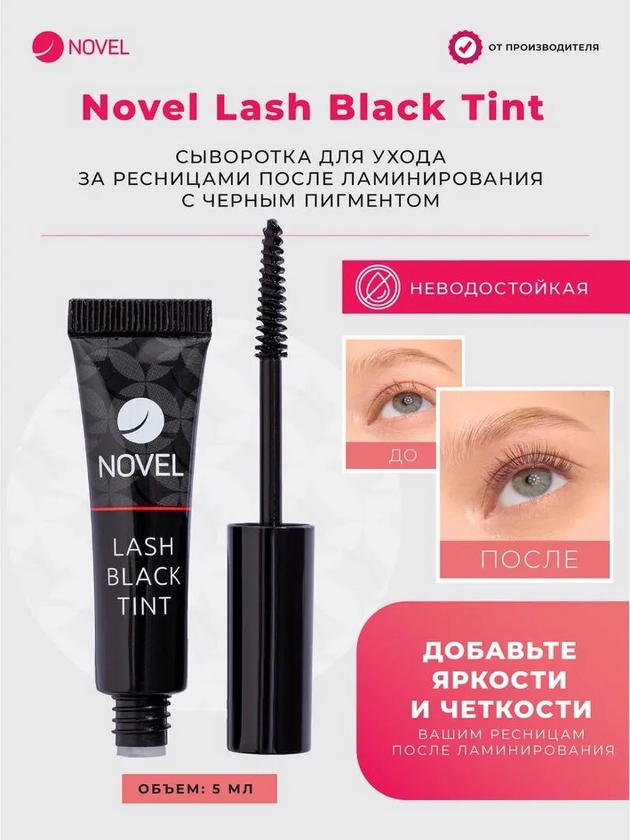 | Комплектация | NOVEL Cыворотка для ресниц после ламинирования Lash Black Tint - 1 шт. (5мл) |
