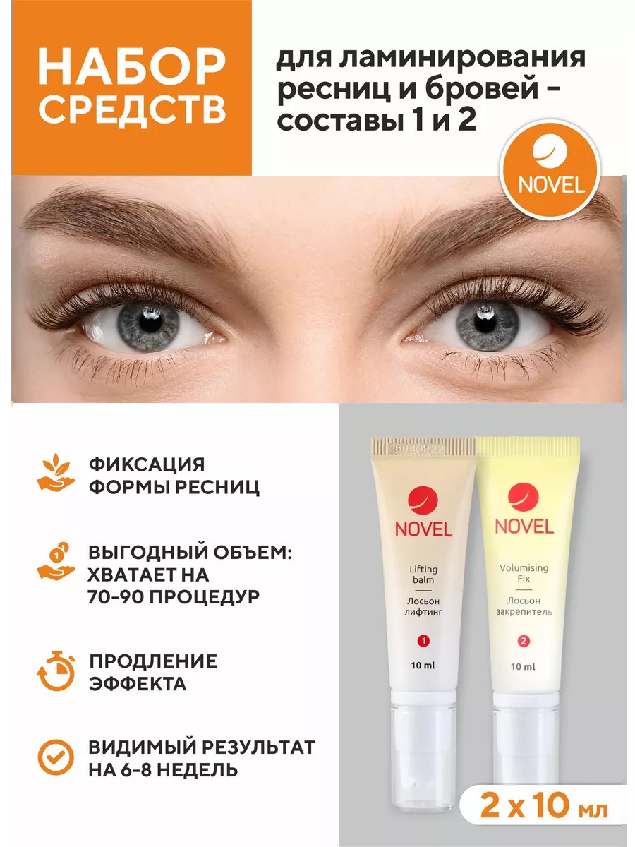 2 (10 ml each). The Novel cosmetics set includes two compositions for eyebrow and eyelash lamination.