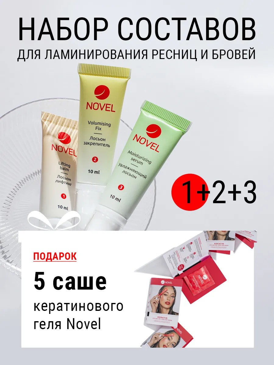 NOVEL Набор для ламинирования ресниц и бровей 3х10+5 саше keratin