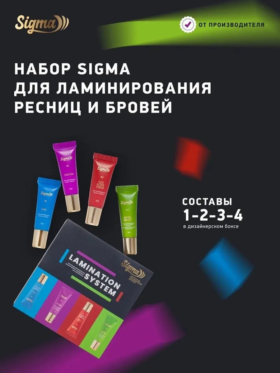 | Комплектация | Состав для ламинирования Sigma Curl #1 - 1 шт.; Состав для ламинирования Sigma Fixation #2 - 1 шт.; Состав для ламинирования Simga Multi Active #3 - 1 шт.; Состав для ламинирования Sigma Hydra Balance #4 - 1 шт. |