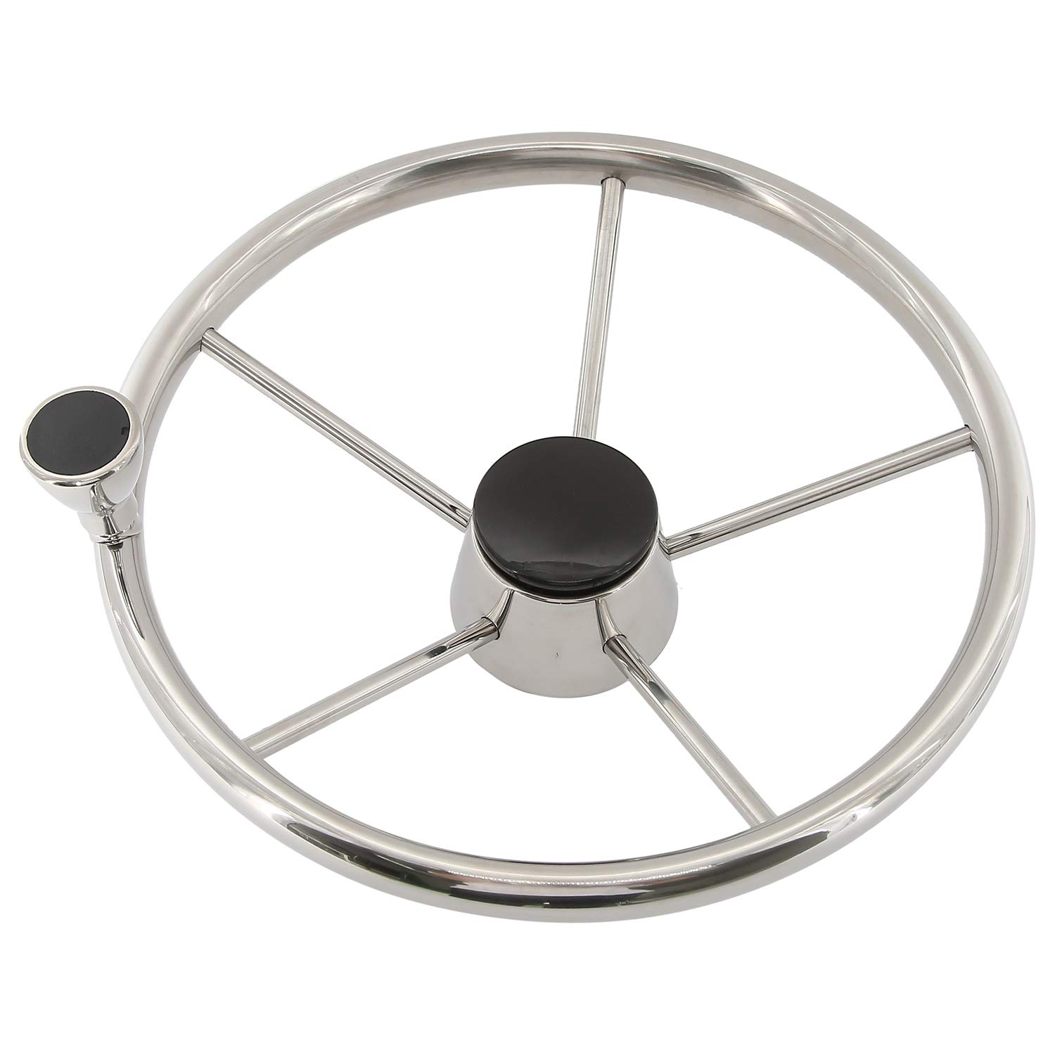 ISURE MARINE 13-1/2 Inch 5-Spoke Destroyer Style Stainless Boat Steering Wheel for Boat, Yacht