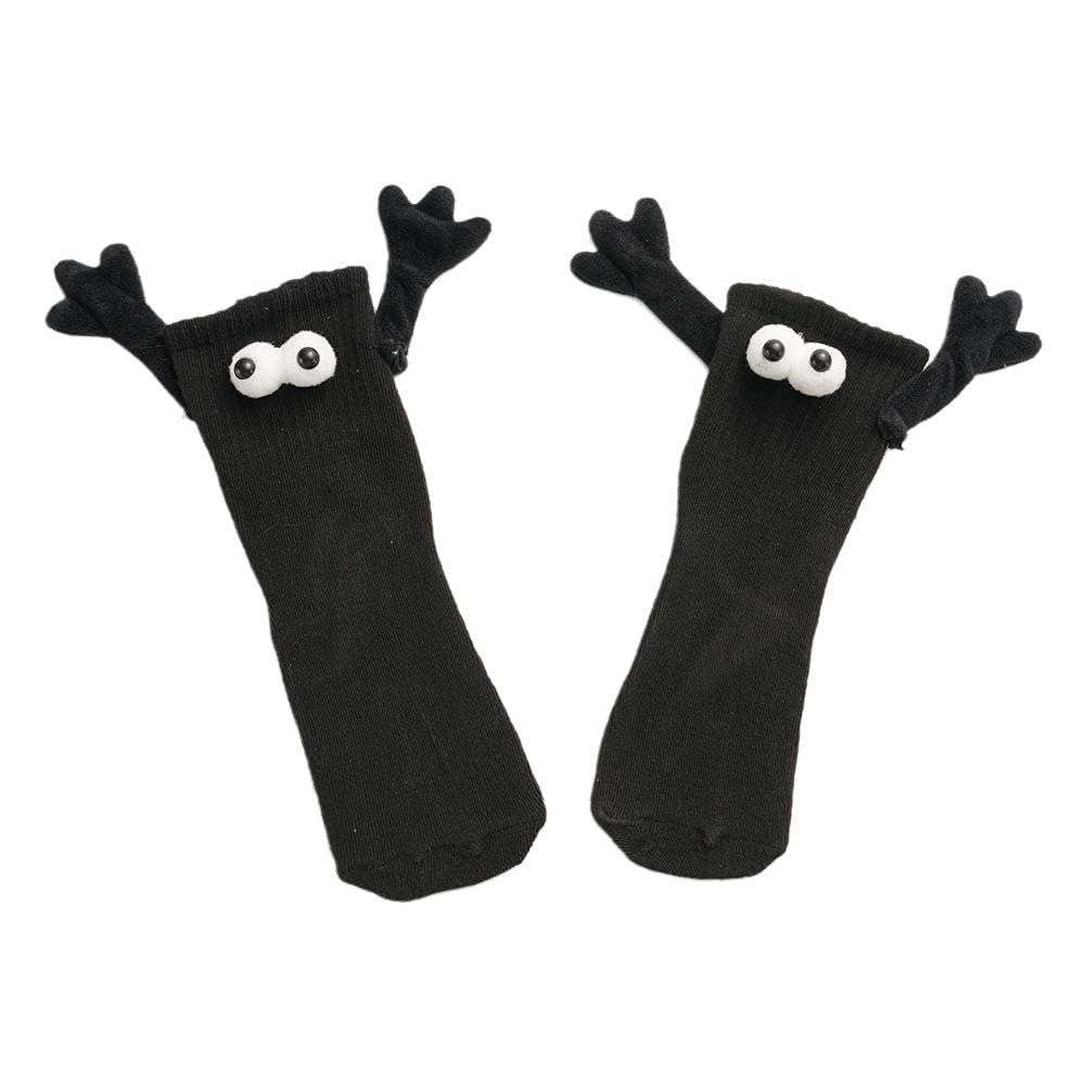 【Service Guarantee】 The socks will be checked and confirmed before shipped out, please rest assured to buy. Feel free to chat with me if you have any questions. We will solve your problem within 24 hours. 【Wide Applicance】 These socks are designed for couples, with a matching black and white design that symbolizes unity, feature a trendy mid-calf length design that complements any outfit. 【Magnetic Holding Hands Connection】The socks are equipped with a magnetic connection, which allows couples to hold hands even when wearing shoes. 【Unique 3D Doll Design】The socks feature a unique 3D toy design that adds a playful to your outfit. 【Comfortable Material】 The socks are made of high-quality cotton material, which is soft, breathable, and comfortable to wear all day long. Machine Wash. Cotton.