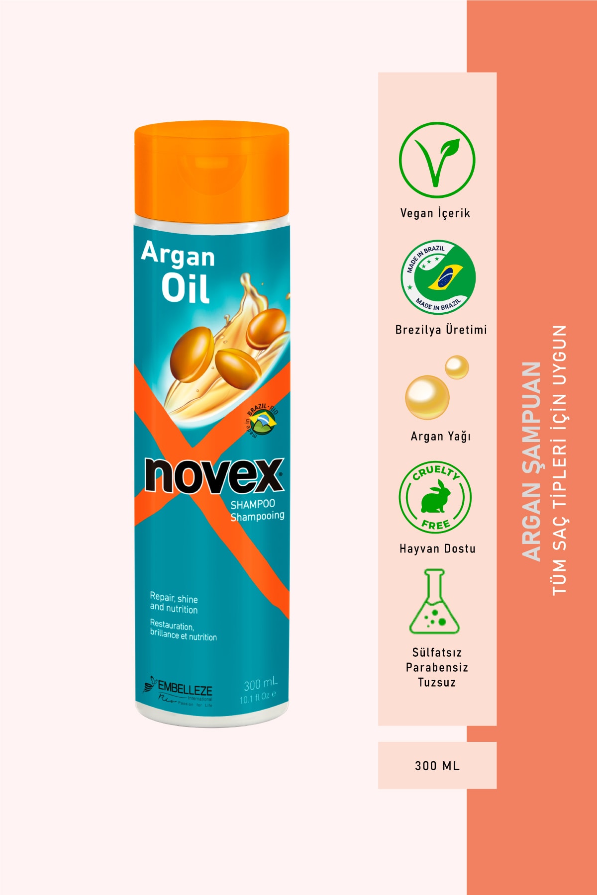 NOVEX Argan Oil - Repairing Argan Oil Shampoo for Damaged and Processed Hair 300ml -