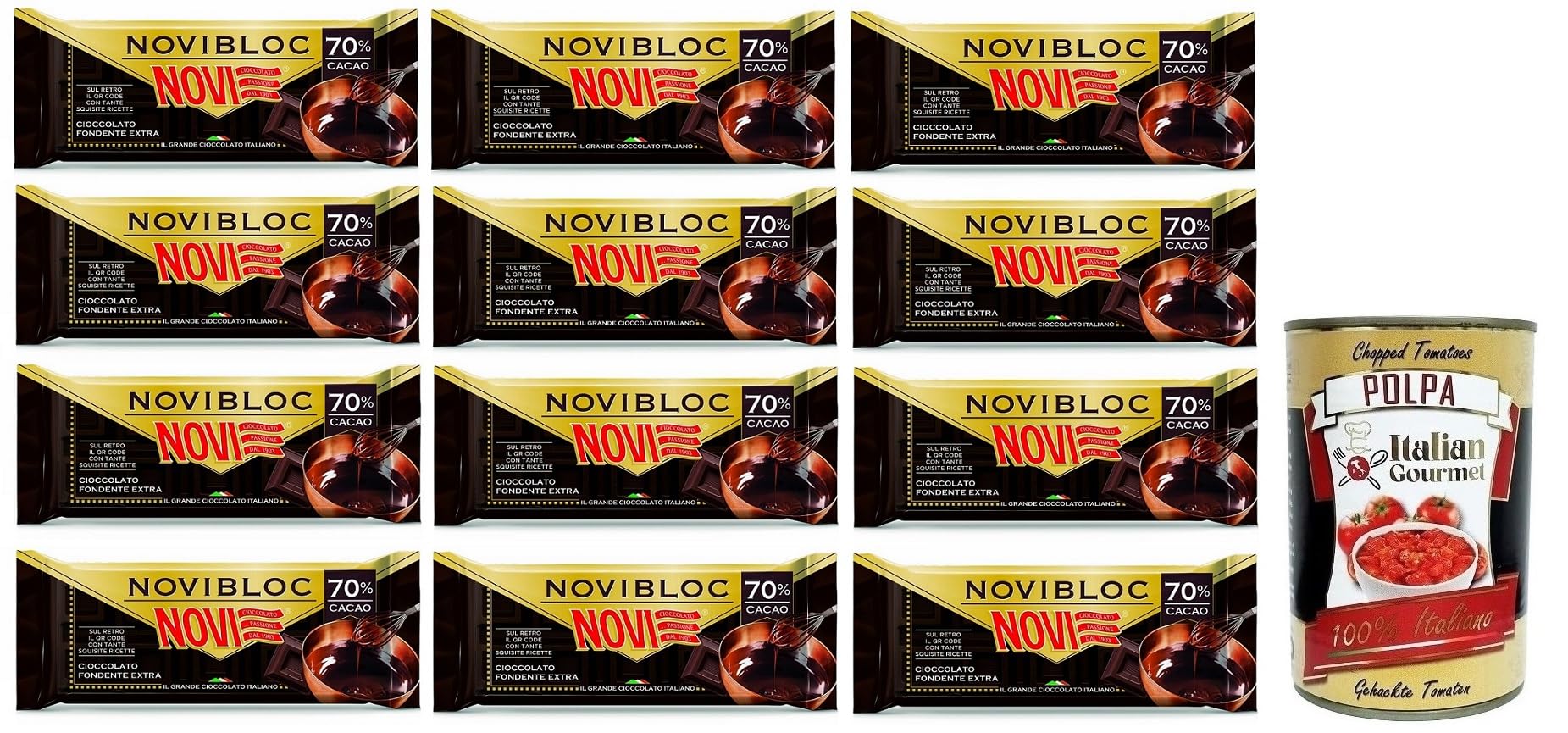Novi Novibloc Chocolate Lot of 12 dark chocolate fondant tablets 70% cocoa 140 g + Tomato Pulp Italian Gourmet Tomato Pulp Box of 400 g