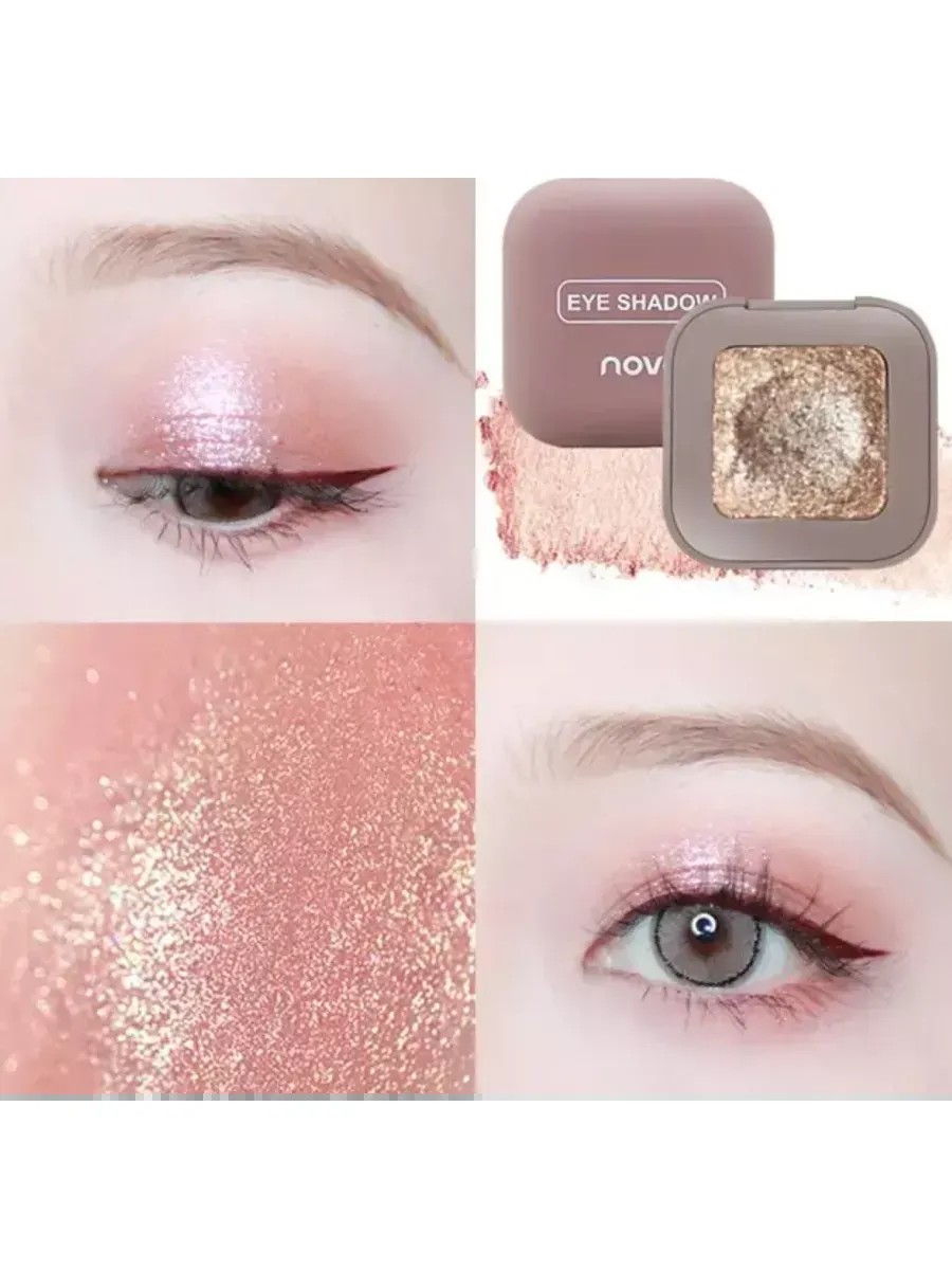 Novo's vibrant, long-lasting shimmer eyeshadows are a trending product in the world of decorative cosmetics for dramatic eye makeup with a vibrant metallic sheen. Rich colors with a high content of pearlescent pigments create a dense, radiant finish from the first layer. The soft texture of these neon shadows allows you to create a stunning eye look in just a few minutes. This sparkle eyeshadow applies incredibly easily and quickly in a perfectly even layer, builds evenly, and blends to the desired consistency—from a bright shimmer to a delicately luminous veil. The glitter eyeshadows dry quickly, maintaining their vibrant color and shine for up to 10 hours. Absolutely lightweight and weightless, they feel almost imperceptible on the eyelids. No primer is required. These duochrome glitter eyeshadows are easily removed with any makeup remover. They contain moisturizing and softening ingredients. Shimmering eyeshadows are available in a wide range of colors, from silver and gold to green and brown.