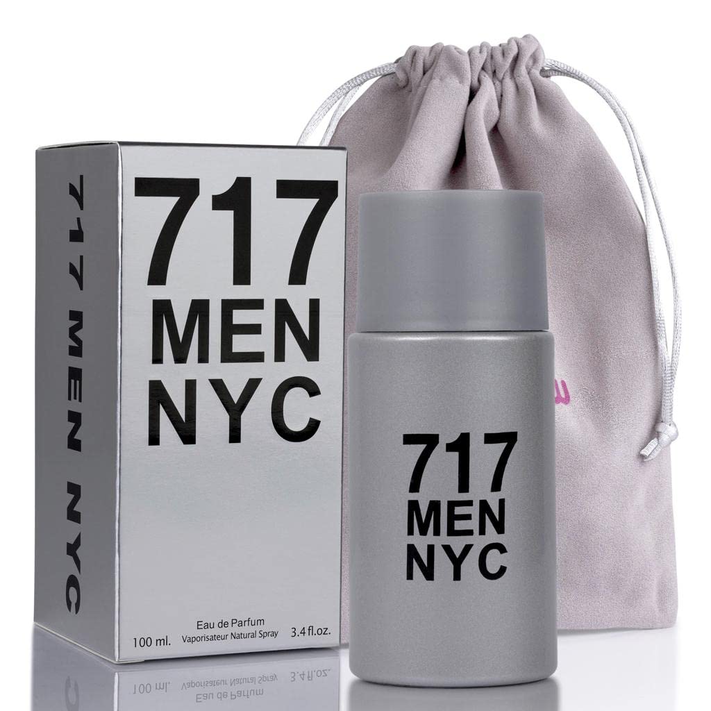 NovoGlow 717 Men NYC- 100ml/3.4 Fl Oz Eau De Parfum Spray - Long Lasting Citrusy Warm Spicy & Woody Fragrance Smell Fresh & Sporty All Day Includes Carrying Pouch Gift for Men for All Occasions