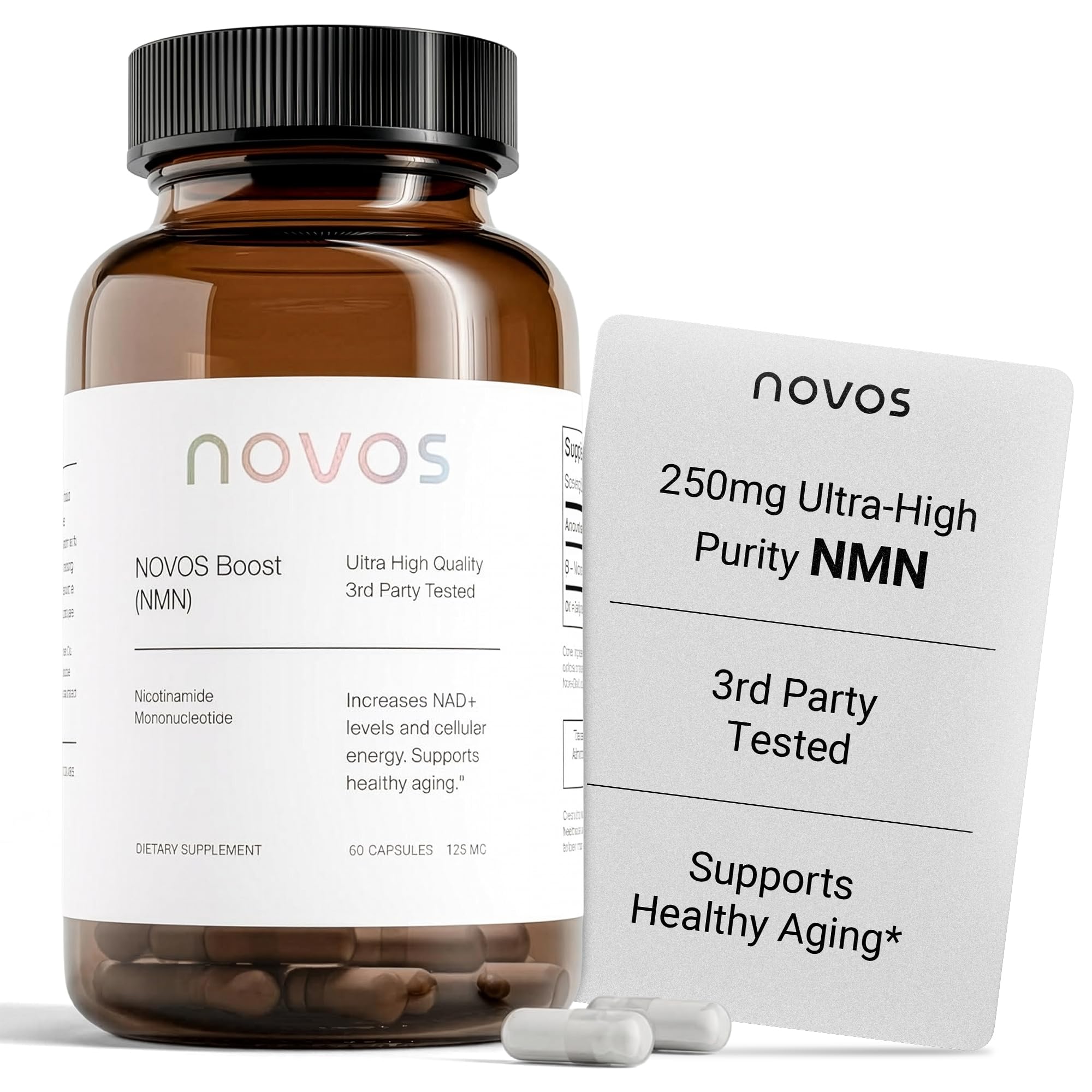 Novos Boost NMN - Contains 250 mg of High-Purity NMN, 60 Capsules, Supports Cellular Repair and DNA Protection, Boosts NAD+
