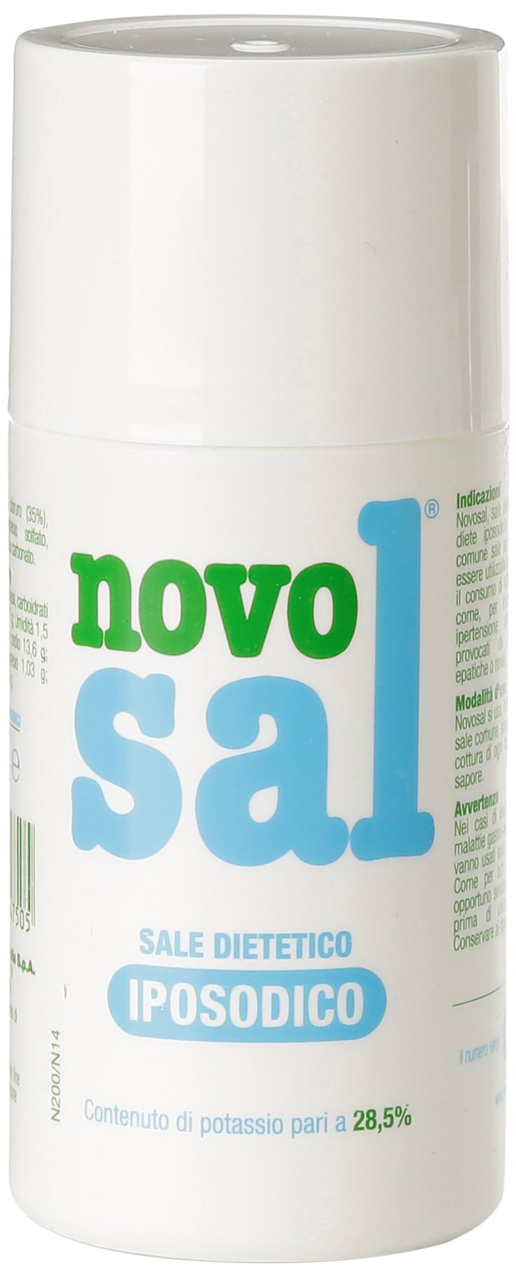 Novosal Low-Sodium Dietary Salt - 200 g INGREDIENTS Potassium chloride, sodium chloride (35 ), potassium citrate, magnesium sulfate, magnesium carbonate, calcium carbonate.