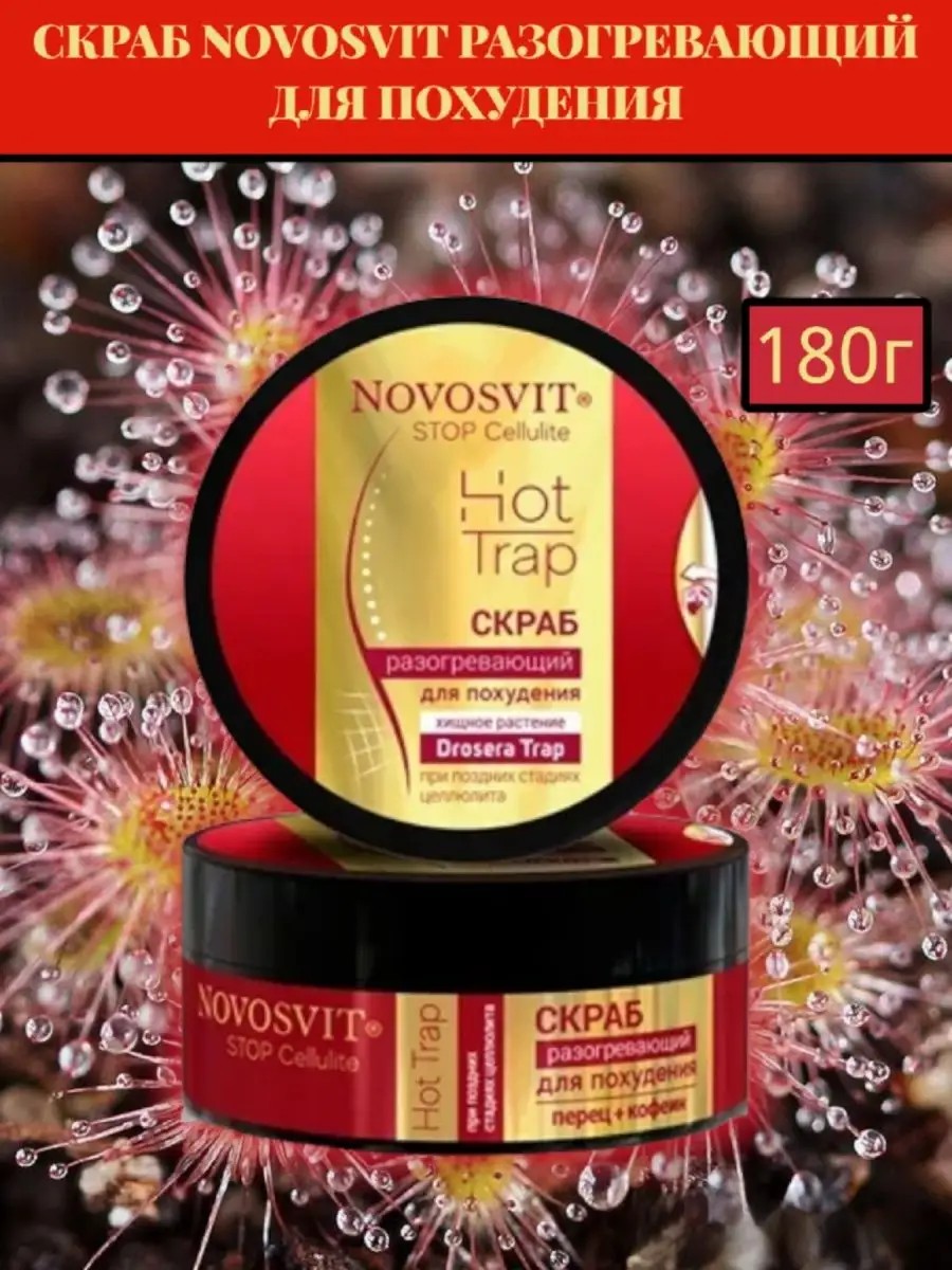 Скраб с гелевой текстурой и частичками скорлупы грецкого ореха — это эффективное средство для борьбы с неровностями кожи на поздних стадиях целлюлита. Он помогает отшелушить отмершие клетки эпидермиса, улучшает микроциркуляцию и ускоряет обменные процессы, что способствует повышению упругости кожи. Скраб мгновенно делает кожу гладкой и шелковистой. В его состав входит уникальный комплекс «Drosera Trap», полученный из хищного растения Drosera, произрастающего на острове Мадагаскар. Для усиления эффекта в состав также добавлены экстракт красного стручкового перца и кофеин. Эти компоненты улучшают микроциркуляцию и оказывают разогревающее действие на кожу. При регулярном использовании в комплексе с другими средствами скраб способствует уменьшению выраженности целлюлита.