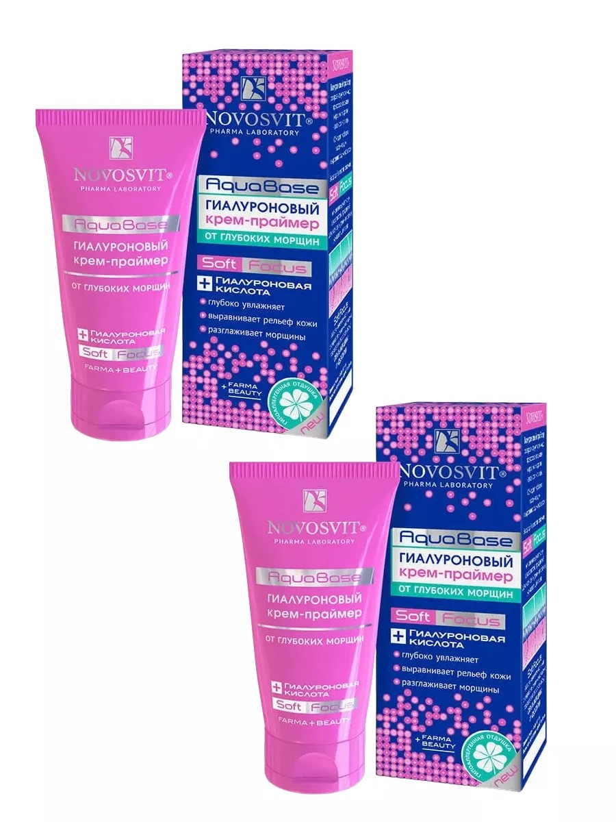 Novosvit , Крем-праймер от глубоких морщин AquaBase гиалуроновый, 50 мл. Комплект из 2-х штук. Гиалуроновый крем-праймер от глубоких морщин «AquaBase» Novosvit создан как идеальное средство для первого этапа макияжа! Он делает кожу матовой, гладкой и шелковистой, подготавливая ее к нанесению косметики, а также увлажняя и питая.
