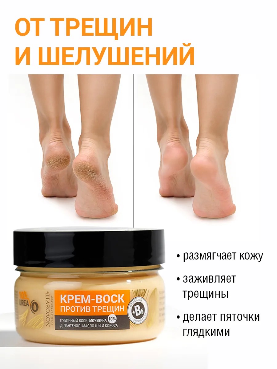 Питательный крем воск на основе натурального пчелиного воска, рекомендуется для ухода за очень сухой, огрубевшей и потрескавшейся кожей тела. Крем воск от трещин содержит мочевину в высокой концентрации 10%, которая является мощным кератолитиком, эффективно размягчает и отшелушивает ороговевшие клетки кожи. Сочетание двух натуральных баттер масел Масло Ши и Масло Кокоса обеспечивают интенсивный уход за кожей тела. Крем парафин для ног максимально питает и восстанавливает сухую кожу рук, ног, стоп и пяточек. Пчелиный воск и Пантенол смягчают кожу, способствуют заживлению трещин, восстанавливают гладкость кожи. Косметика с натуральными маслами подойдёт в качестве ухода для рук. Тающая текстура баттер подойдёт как крем для рук и локтей, а так же эффективен в уходе для ногтей, для смягчения сухой кутикулы и предотвращения заусенцев. Смягчающее средство идеальное решение от трещин на стопах и пяточках. Легкий цветочно-кокосовый аромат можно использовать для тела, особое внимание рекомендуем уделить проблемных сухим участкам (локти и колени). Уходовая косметика может использоваться в домашнем уходе ежедневно. Способ применения нанесите крем для пяток от трещин и сухости на чистую сухую кожу. Распределите массирующими движениями до полного впитывания.