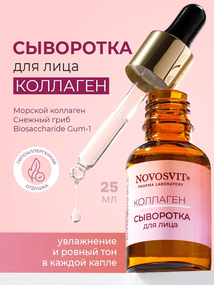 Сыворотка для лица с коллагеном «Коллаген» — это антивозрастная сыворотка для лица, созданная для поддержания упругости кожи и борьбы с признаками старения. Благодаря активным компонентам сыворотка для лица от морщин помогает повысить эластичность и гладкость кожи, укрепляет структуру эпидермиса и обеспечивает интенсивное увлажнение.