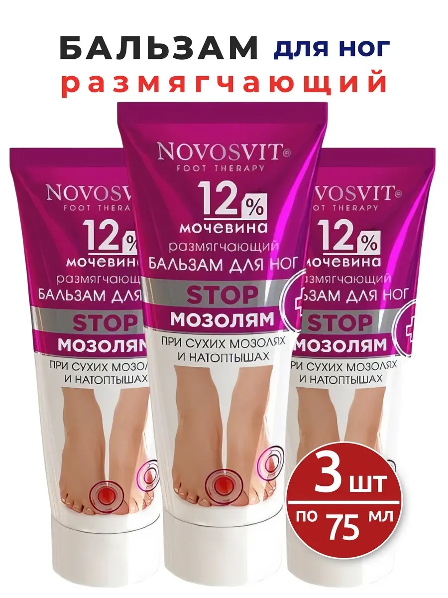 Novosvit Бальзам для ног размягчающий 12% мочевина 75 мл-3шт
