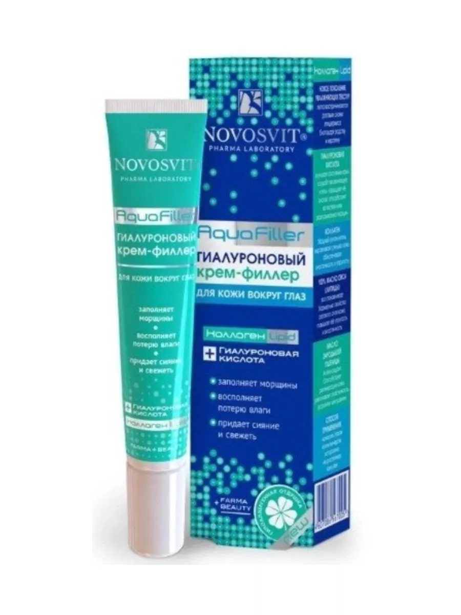 Novosvit hyaluronic aquafiller cream-filler for the skin around the eyes 20 ml - restores the skin around the eyes, makes it smooth and elastic. It effectively eliminates fine wrinkles, moisturizes and nourishes the skin.