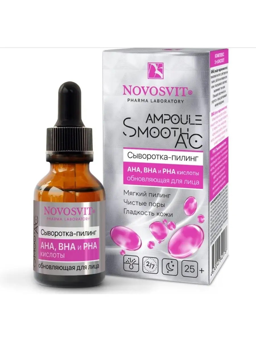 | Комплектация | Novosvit ampoule smooth ac сыворотка-пилинг aha bha и pha кислоты обновляющая для лица 25 мл |