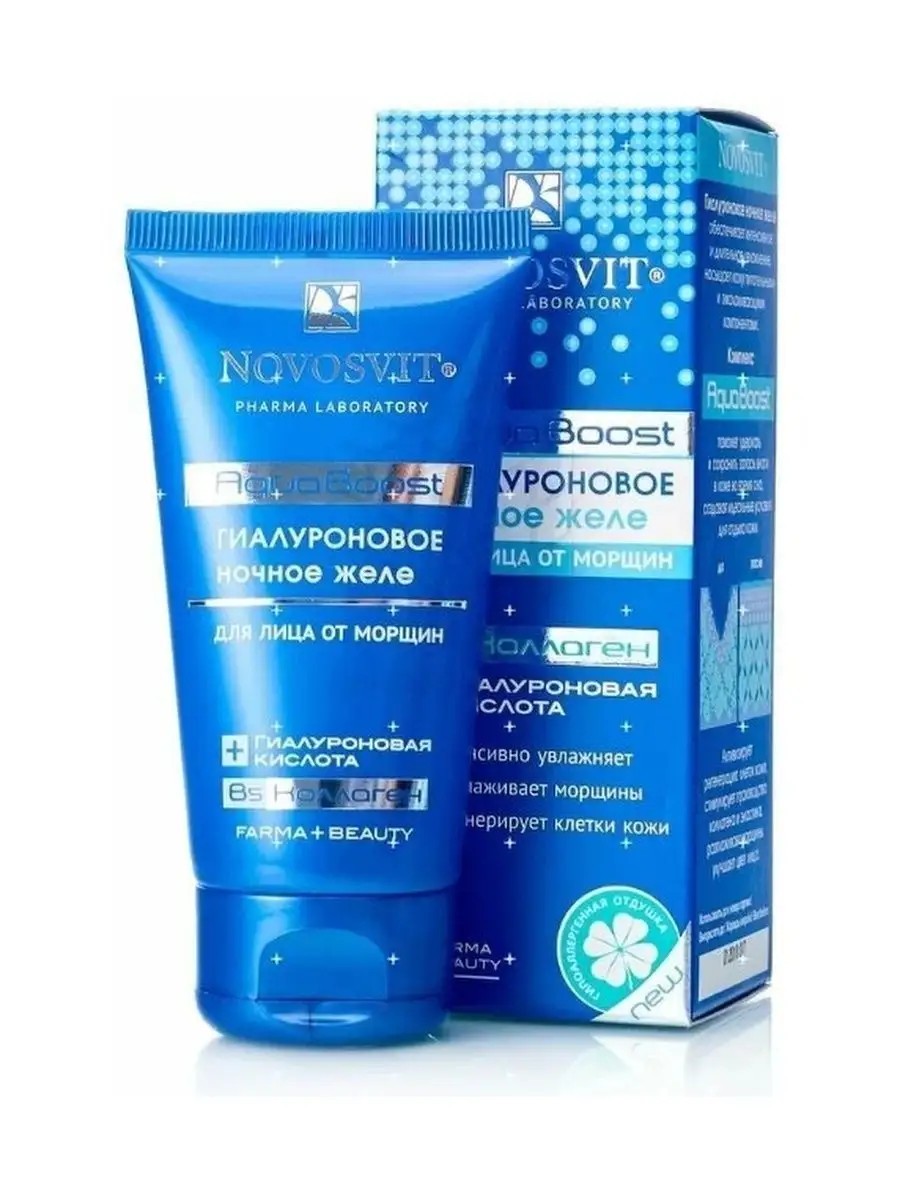 Novosvit Hyaluronic Night Jelly, with a unique formula developed specifically for nighttime care, intensely moisturizes and enhances skin cell regeneration during sleep.