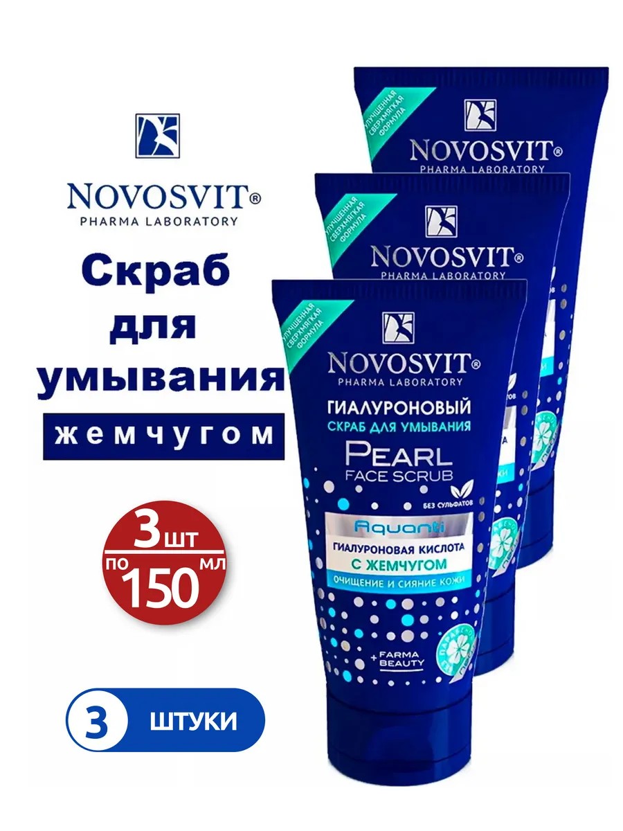 Novosvit Гиалуроновый скраб для умывания с жемчугом 150 мл-3шт