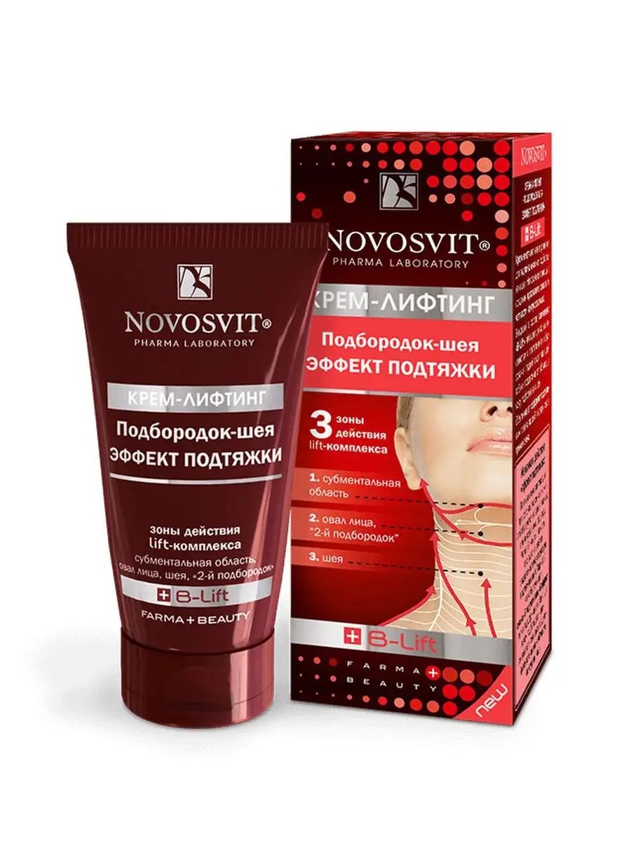 Active ingredients A completely new solution for lifting the skin of the chin and neck! Instant help in creating a beautiful oval and clear contours of the face. - The B-Lift complex included in the composition has the unique properties of gradually forming a smooth lifting film that supports sagging skin of the chin and neck.