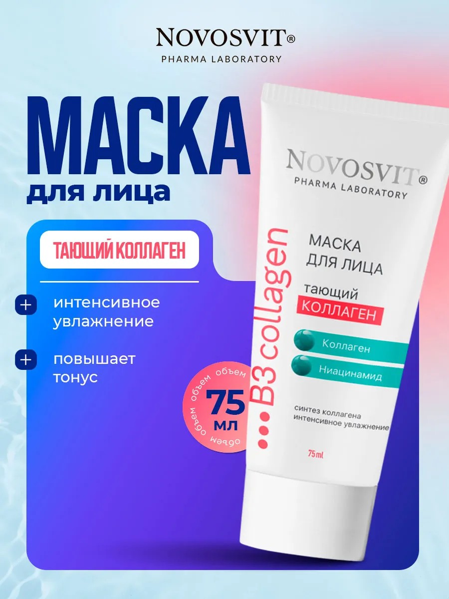 The Novosvit Melting Collagen Face Mask moisturizes and increases skin elasticity, which is important for maintaining youth and health.