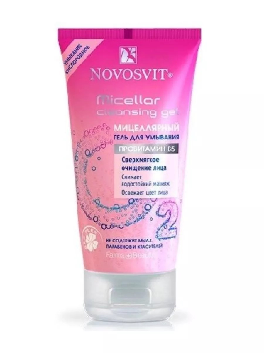 Novosvit micellar cleansing gel is an excellent product for cleansing the face of impurities and makeup. The gel contains tiny micelles that, like a "magnet," attract dirt, effectively cleanse without damaging the skin. A special technology preserves oxygen bubbles in the gel, creating an "oxygen" washing effect, giving additional freshness and tone to the skin. Micellar gel cleanses without soap, ideal for sensitive skin. Does not contain soap, parabens, or dyes!