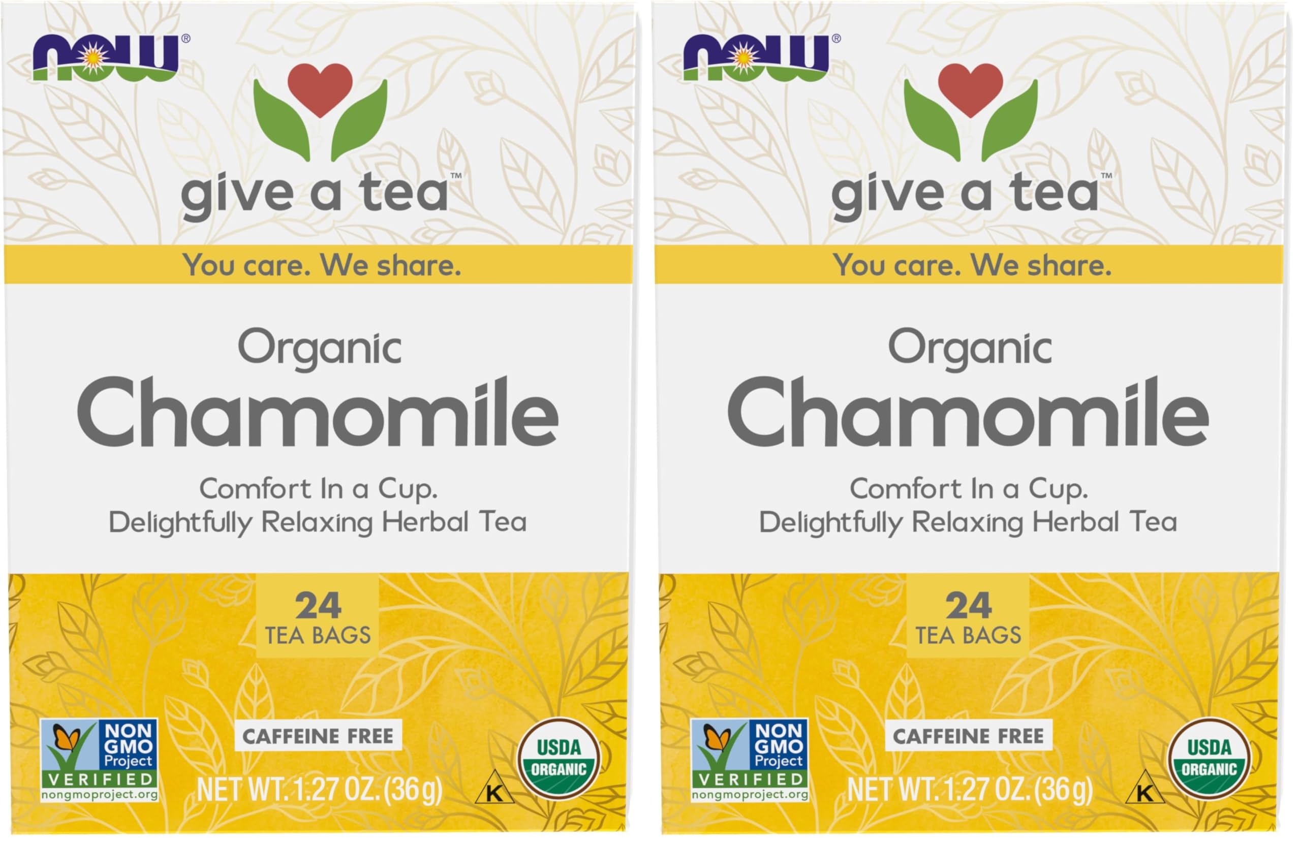 NOW Foods Chamomile Tea Comfort in a Cup Relaxing and Caffeine-Free Non-GMO Premium Unbleached Tea Bags with No-Staples Design 24-Count (Pack of 2)