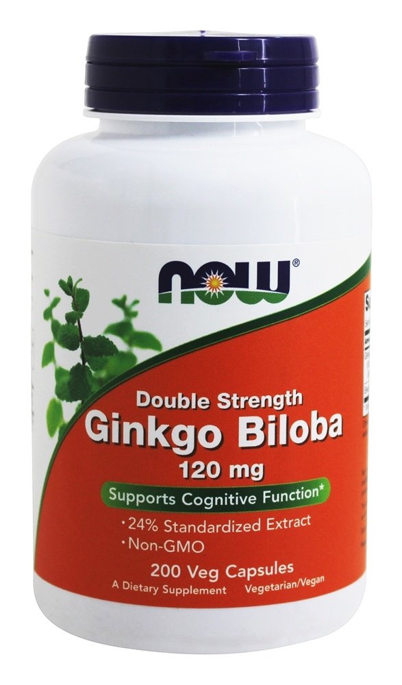 NOW Supplements Ginkgo Biloba 120 mg Double Strength Non-GMO Project Verified 100 Veg Capsules