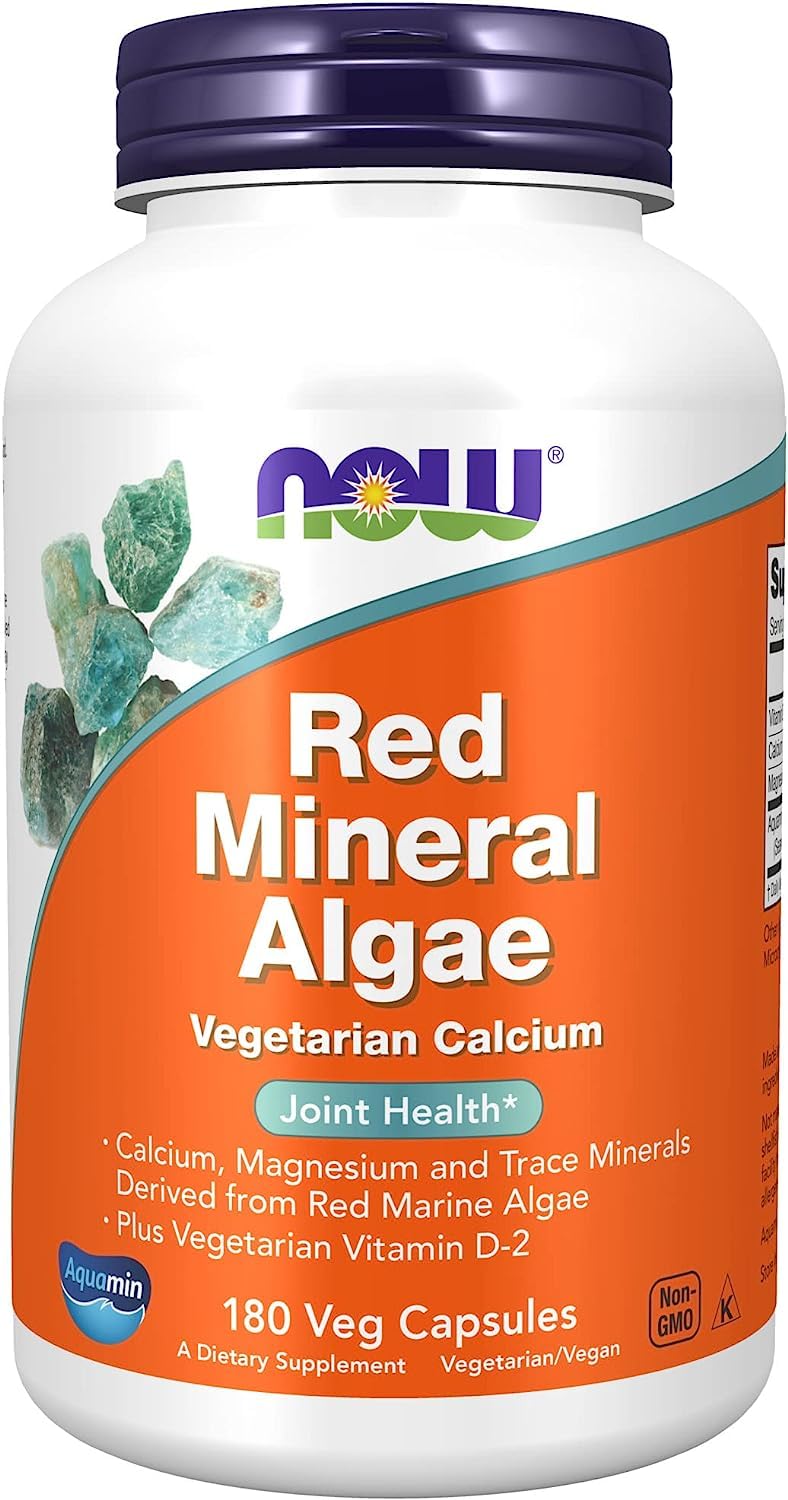 Now Foods Red Mineral Algae plus Vitamin D-2 | Vegetarian Calcium | Joint Health | 180 Capsules