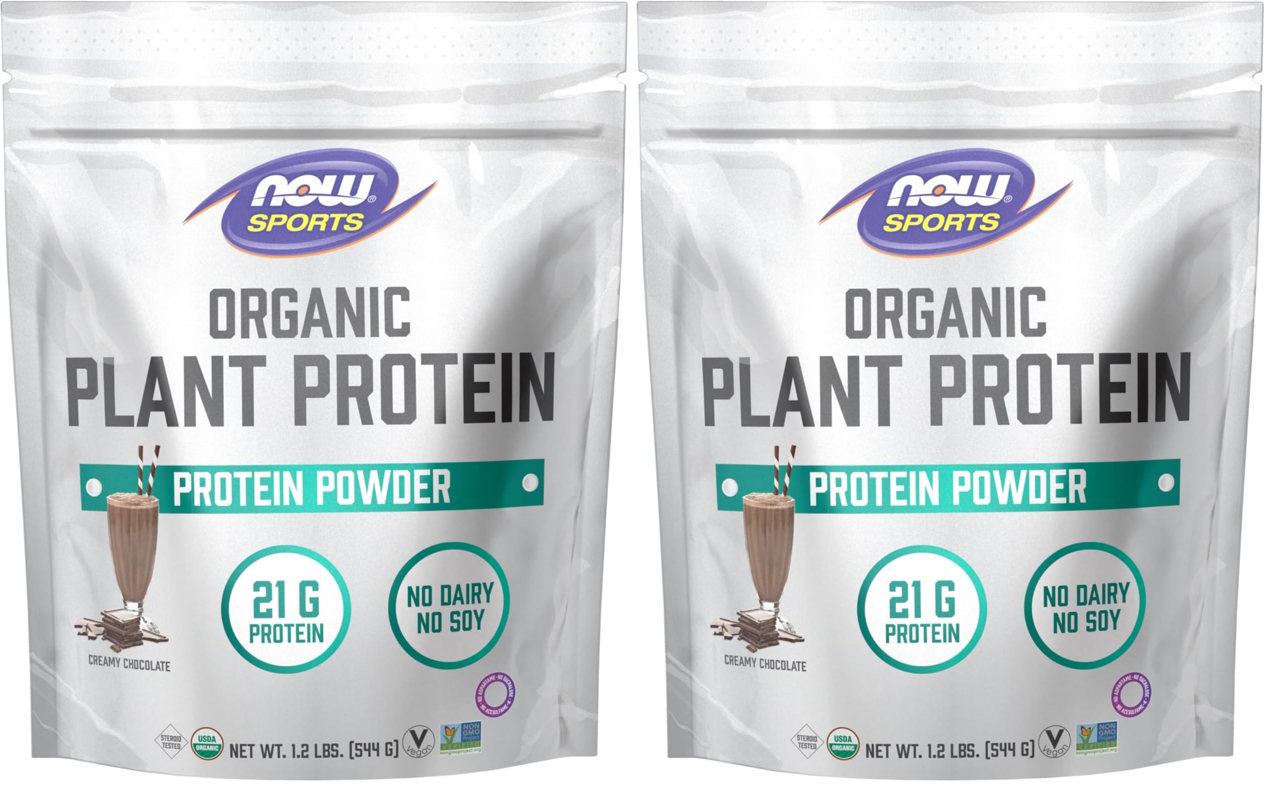 NOW Foods Sports Organic Plant Protein Chocolate Flavor Vegan Powder 1 lb. (Pack of 2) 1.2 Pound (Pack of 2)