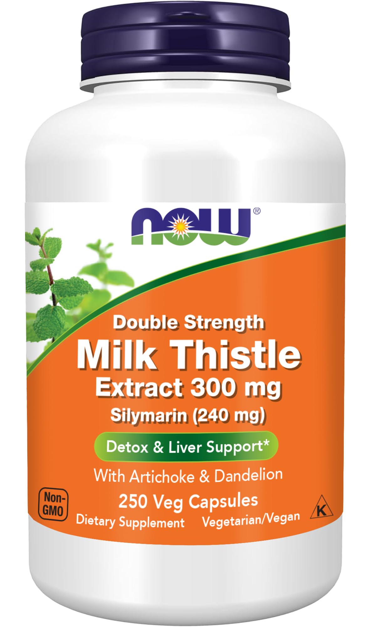 NOW Foods Supplements Silymarin Milk Thistle Extract 300 mg with Artichoke and Dandelion Double Strength Supports Liver Function* 250 Veg Capsules (1)