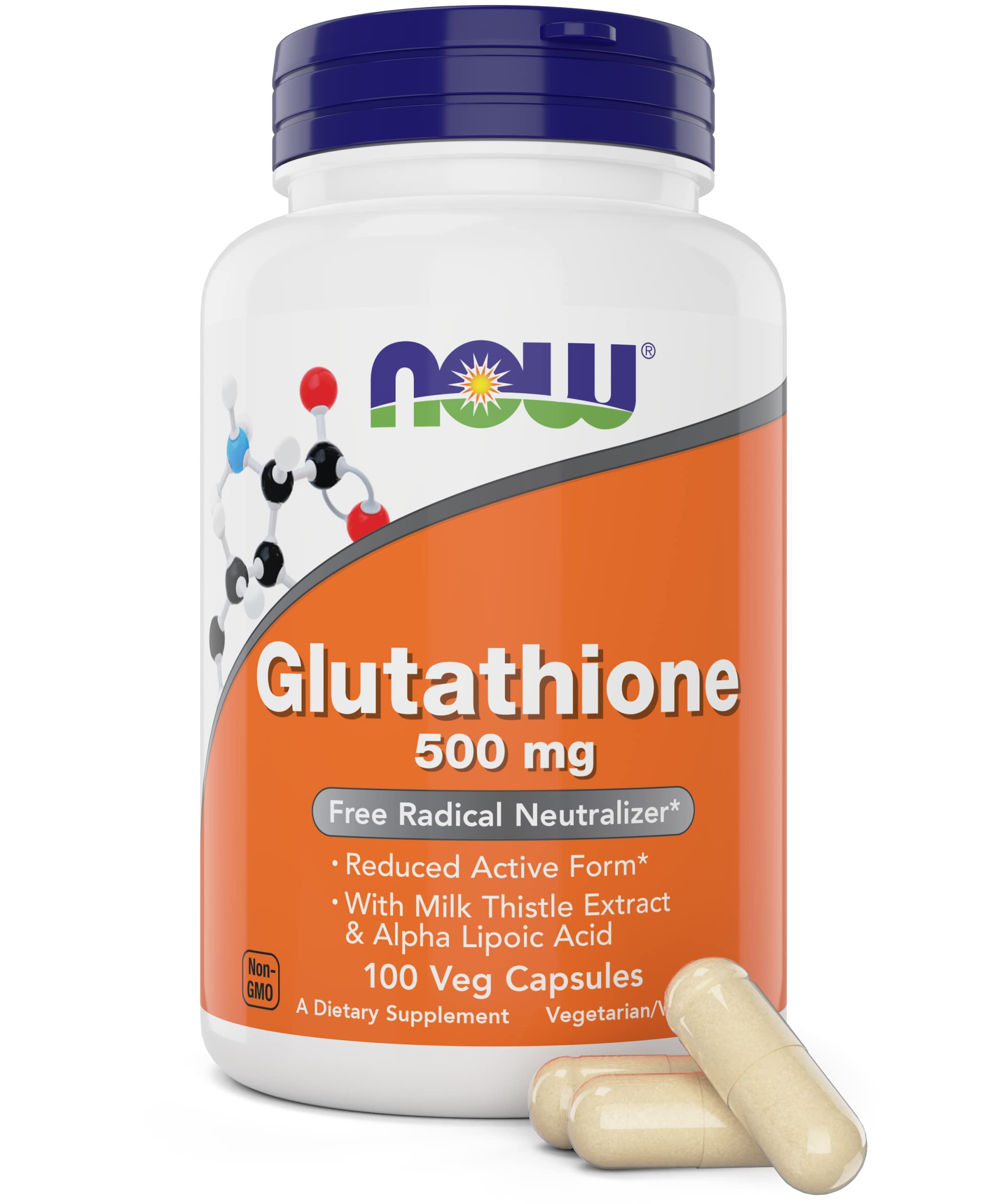 Now Glutathione 500 mg 100 Vegan Capsules - Reduced Form GSH Supplement - Enhanced with Milk Thistle Extract and Alpha Lipoic Acid