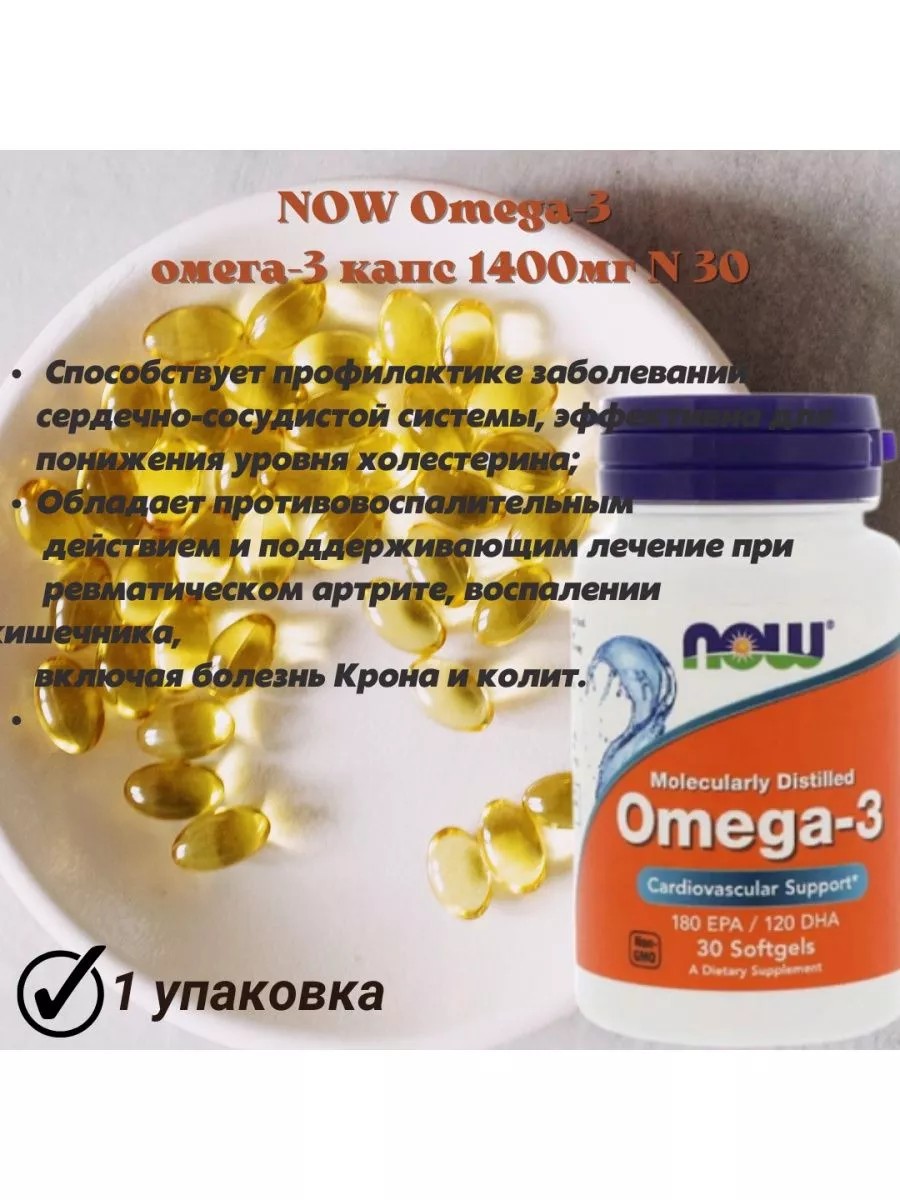 Полезная жирная кислота Омега 3 способствует профилактике заболеваний сердечно-сосудистой системы, эффективна для понижения уровня триглицеридов и холестерина, а также для повышения уровня "хорошего" холестерина (HDL), обладающего противовоспалительным действием и поддерживающим лечение при ревматическом артрите, воспалении кишечника, включая болезнь Крона и колит.Полезная жирная кислота Омега 3 обладает полезным действием на кожу (облегчает симптомы псориаза), важна для функционирования мозга и применяется для профилактики депрессии, нарушении внимания, стресса, а также для уменьшения осложнений при заболевании Альцгеймера.Омега 3 компании "Now Foods" является высоко эффективным препаратом, полученным из жиров рыбы северных морей, таких как, лосось, сардины, скумбрии.Препарат Омега 3 компании "Now Foods"прошел строжайшую проверку на качество, которая засвидетельствовала высокое содержание жирных кислот.