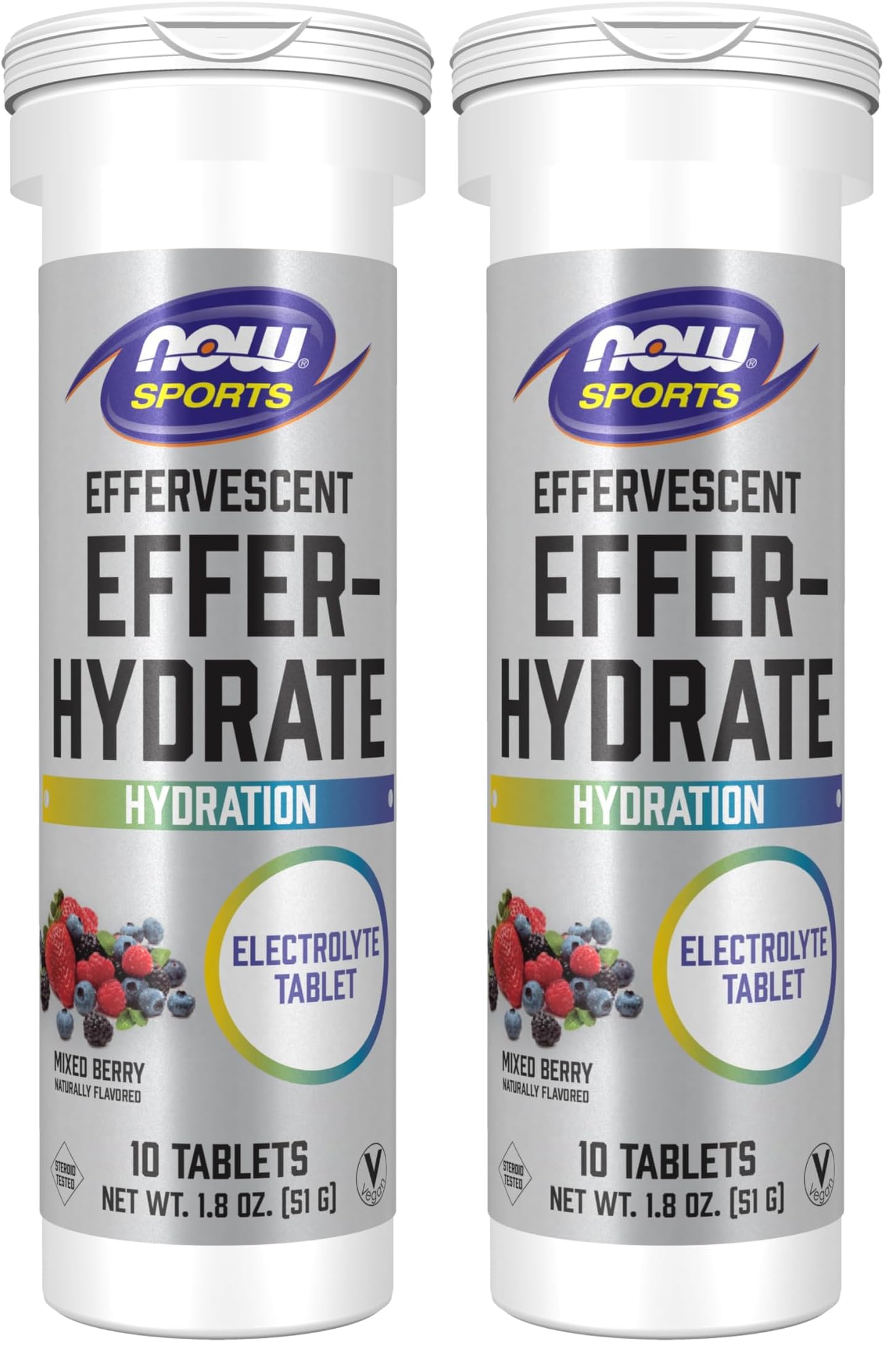 NOW Sports Nutrition Effervescent Effer-Hydrate Electrolyte Supplement Recovery* Mixed Berry 10 Tablets (Pack of 2) Mixed berry 10 Count (Pack of 2)