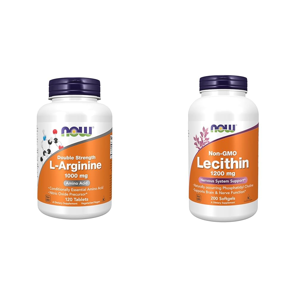 NOW Supplements L-Arginine 1 000 mg Nitric Oxide Precursor* Amino Acid 120 Tablets & Supplements Lecithin 1200 mg with Naturally Occurring Phosphatidyl Choline 200 Softgels
