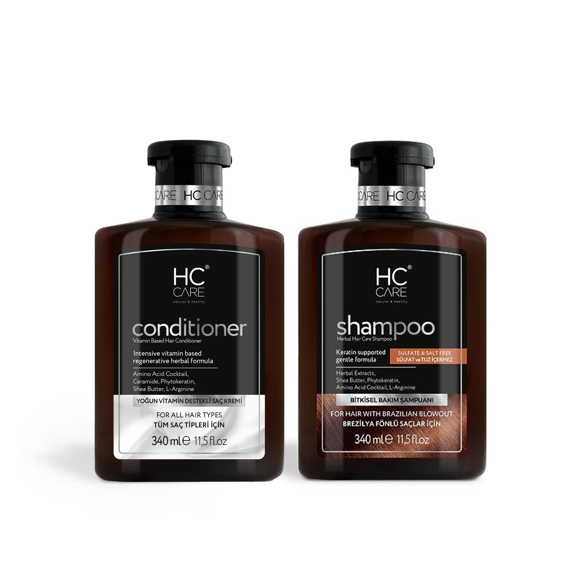 Everything safe and healthy: it does not cause any side effects thanks to its completely natural and internationally patented formula. It does not contain salt, alcohol, sulfate, silicone, parabens, formaldehyde. Clinical tests have shown that when using many vitamins that the body cannot produce itself and which must be added from outside, a significant improvement in the hair structure occurs on the scalp and hair. Not harmful and also nourishing: free from parabens and sulphates, the hair treatment is gentle enough for daily use, even for people with dry, damaged or colored hair. Contains no synthetic and harmful chemicals such as parabens, silicones, sulfates, salts, petrochemicals, SLS, SLES, GMO, DEA, MEA, PEG etc. Professional treatment: The sulfate-free system removes dull residue and restores depleted hydration by repairing years of damage. Biotin, also known as a beauty vitamin, is very important for hair health with its anti-shattering effect. Scientific data shows that biotin deficiency causes hair loss. HC VOLUME SHAMPOO: developed by HC VOLUME SHAMPOO, contains many plant extracts. It is a combination of 100 herbs and patented. This vitamin mix contains vitamins A, E, F and H (biotin), which are important for the beauty and health of the hair. How to use: Apply HC volume shampoo by gently massaging your hair after moisturizing. Leave it on your hair for a few minutes and rinse it out.HC Care Shampoo en HC-haarspoeling en haarverzorging lotionset, 340 ml shampoo 340 ml haarconditioner (Braziliaanse föhn, gedroogd haar) braziliaanse föhn gedroogd haarAlles veilig en gezond: het veroorzaakt dankzij de volledig natuurlijke en internationaal gepatenteerde formule geen bijwerkingen. Het bevat geen zout, alcohol, sulfaat, siliconen, parabenen, formaldehyde. Klinische tests hebben aangetoond dat bij het gebruik van veel vitaminen die het lichaam niet zelf kan maken en die van buitenaf moeten worden toegevoegd, op hoofdhuid en haar een duidelijke verbetering van de haarstructuur optreedt. Niet schadelijk en ook voedend: vrij van parabenen en sulfaten is de haarkuur zacht genoeg voor dagelijks gebruik, zelfs voor mensen met droog, beschadigd of gekleurd haar. Bevat geen synthetische en schadelijke chemicaliën zoals parabenen, siliconen, sulfaten, zouten, petrochemicaliën, SLS, SLES, GMO, DEA, MEA, PEG enz. Professionele behandeling: het sulfaatvrije systeem verwijdert doffe resten en herstelt de uitgeputte hydratatie door jarenlang schade te herstellen. Biotine, ook bekend als schoonheidsvitamine, is met zijn anti-verbrijzelende werking zeer belangrijk voor de gezondheid van het haar. Wetenschappelijke gegevens tonen aan dat biotinegebrek haaruitval veroorzaakt. HC VOLUME SHAMPOO: ontwikkeld door HC VOLUME SHAMPOO, bevat veel plantenextracten. Het is een combinatie van 100 kruiden en gepatenteerd. Deze vitaminemix bevat vitamine A, E, F en H (biotine), die belangrijk zijn voor de schoonheid en gezondheid van het haar. Hoe te gebruiken: breng HC-volume shampoo aan door je haar na het bevochtigen zacht te masseren. Laat het enkele minuten op je haar liggen en spoel het uit.