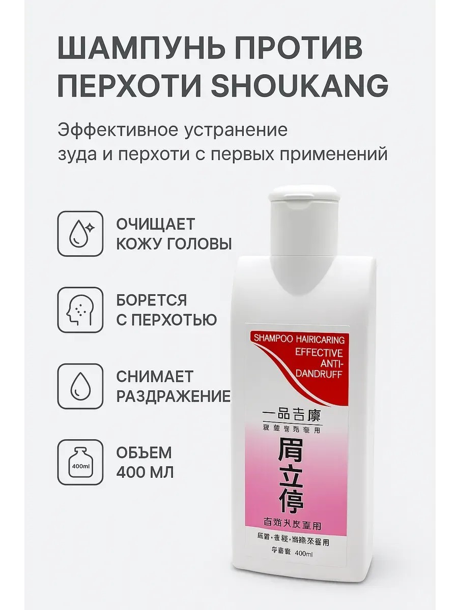 Шампунь против перхоти Shoukang 400 мл – эффективное средство для ухода за волосами и кожей головы. Формула с активными компонентами глубоко очищает, устраняет зуд и регулирует работу сальных желез, помогая избавиться от перхоти и предотвратить её повторное появление.
