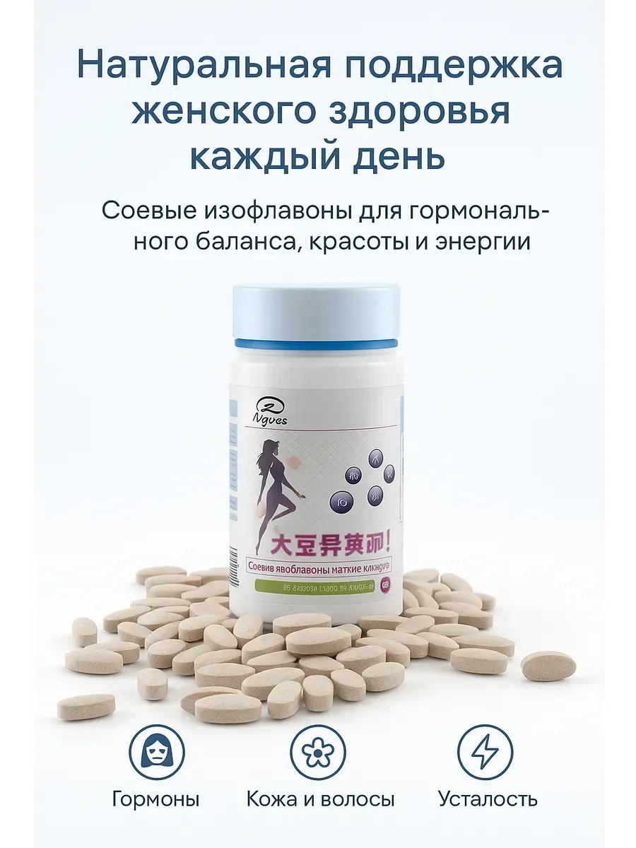 В каждой таблетке — оптимальное сочетание соевых изофлавонов, витаминов и минералов для комплексной поддержки организма. Удобная форма таблеток облегчает ежедневный приём и обеспечивает быстрый эффект.
