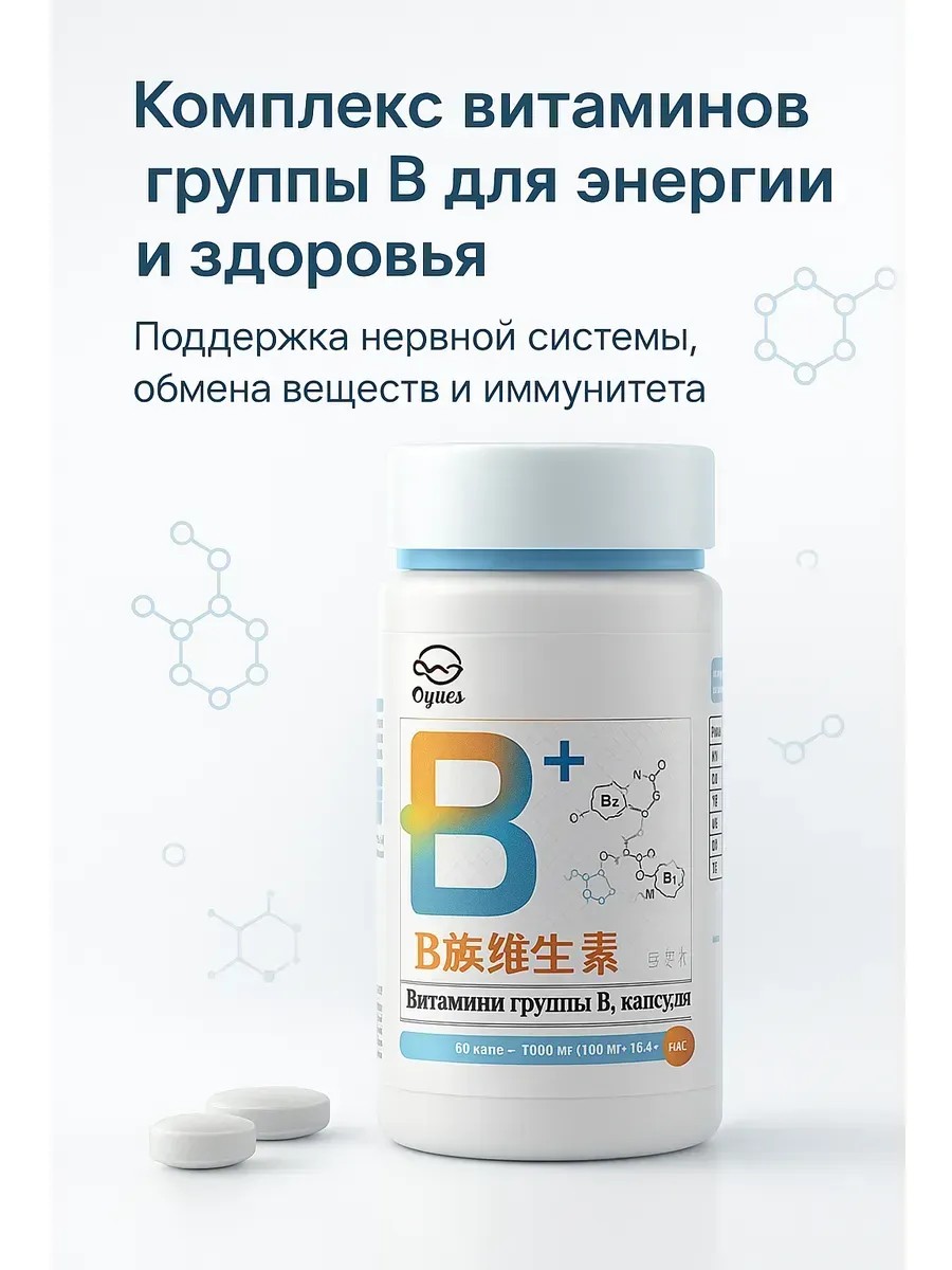 Витамины группы B в таблетках — это комплексное средство для поддержания энергии, здоровья нервной системы и обмена веществ. Каждая капсула содержит оптимальное сочетание витаминов B1, B2, B6 и других компонентов, необходимых для нормального функционирования организма.