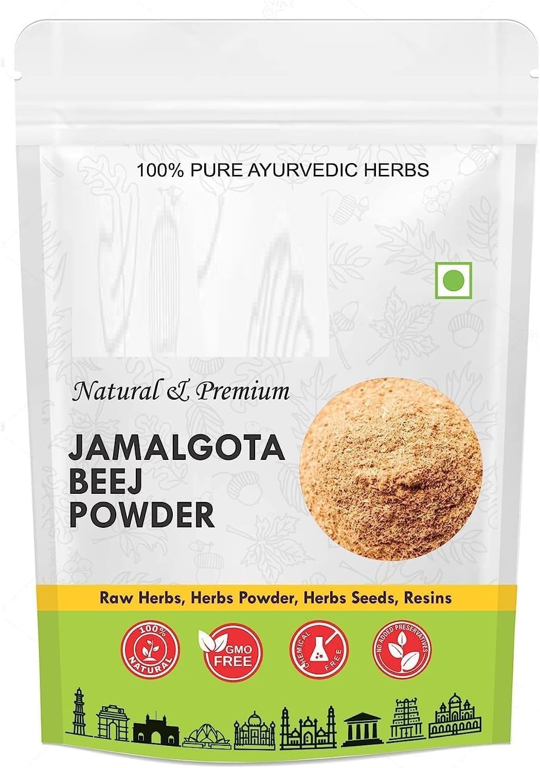 Jamalgota seed powder is a fine, yellowish-brown powder derived from the seeds of the Croton tiglium plant, which is native to India and Southeast Asia. The powder is commonly used in traditional Ayurvedic medicine and Chinese medicine for its purgative and laxative properties. It contains a compound called croton oil.