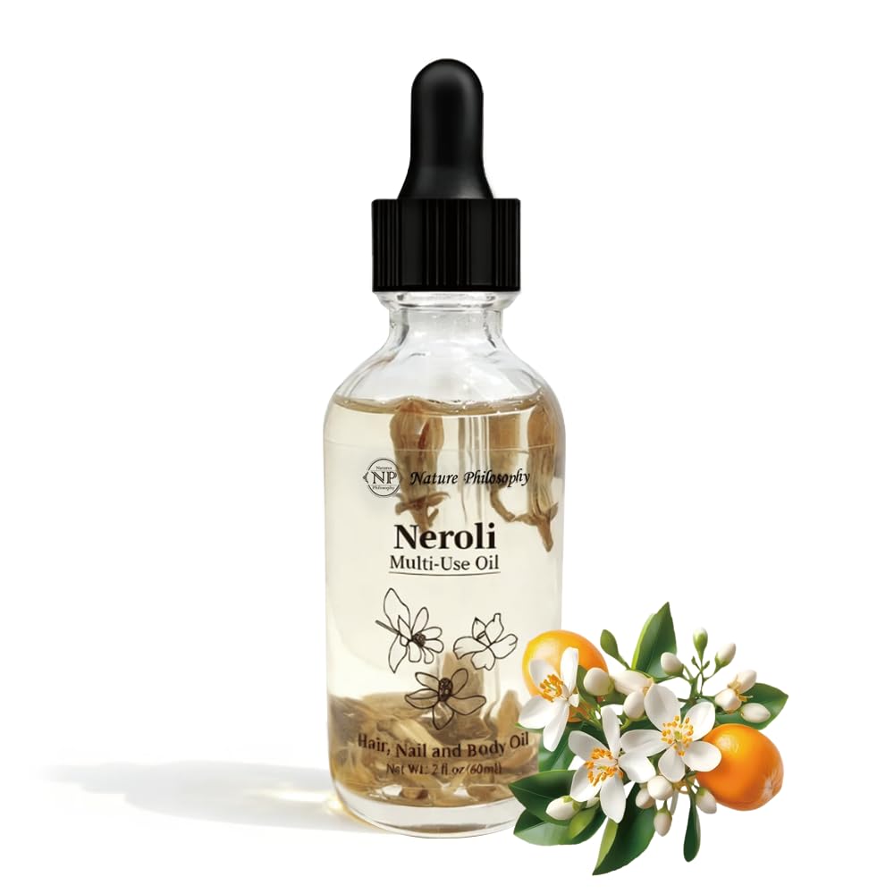 Customer-First Philosophy - NP NATURES PHILOSOPHY stands for natural, organic, gentle effectiveness. Each bottle undergoes strict quality checks. We prioritize your experience—contact customer service anytime for support. Day Night Versatile Use - Seamlessly fits morning night routines: Thin layer post-cleansing primes skin for smooth makeup thicker application on dry areas (cheeks, elbows) delivers intensive night repair. Mix with lotion cream for boosted hydration. Multi-Purpose All-Round Care - Suitable for all skin types: Soothes and brightens facial skin, softens body with massage, tames frizzy hair ends, and nourishes hands nails. Boasts a natural fresh neroli scent, doubling as aromatherapy. Natural Plant Extract Ingredients- Crafted with organic bitter orange flower, neroli essential oil, grapeseed oil, and sweet almond oil—rich in flavonoids and vitamin E. Gentle, additive-free formula penetrates quickly, deeply hydrating skin and relieving dryness roughness. Package Specifications -1 bottle of 60ml (2 fl oz) Neroli Multi-Use Care Oil with a sleek, elegant design. Equipped with a leak-proof European dropper and safety seal cap for precise dosing, hygienic use, and long-lasting freshness.