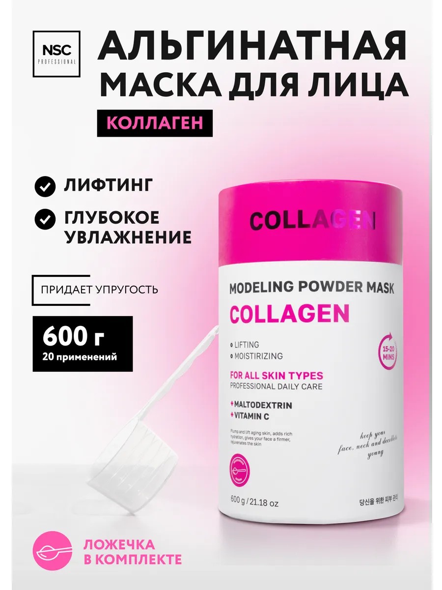 Альгинатная моделирующая маска с коллагеном Корейского бренда NSC ( NAME SKIN CARE ) и витамином C оказывает выраженное омолаживающее действие на кожу, восстанавливает ее защитный барьер и естественную увлажнённость. Повышает упругость и эластичность кожи, выравнивает тон и рельеф кожи. Кожа восстанавливается и наполняется жизненной силой, мелкие морщинки разглаживаются. Коллаген наполняет кожу влагой и необходимыми для восстановления аминокислотами, сокращает морщины. Мальтодекстрин способствует уменьшению мимических морщин и улучшает питание кожи. Витамин C уменьшает выраженность пигментных пятен, выравнивает тон, оказывает антиоксидантное действие, повышает защитные функции кожи. В комплекте есть мерная ложка.