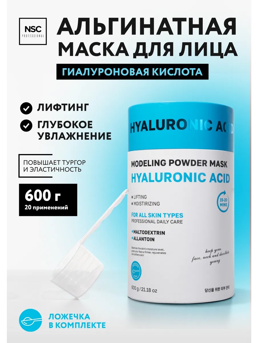 Альгинатная моделирующая маска с гиалуроновой кислотой от Корейского бренда NSC ( NAME SKIN CARE ) помогает обеспечить интенсивное увлажнение обезвоженной и сухой кожи. Сохраняет целостность структуры кожи, обладает прекрасной способностью насыщать и удерживать влагу в дерме, активизирует регенерацию тканей, улучшает цвет лица. Обеспечивает дренажный эффект, способствует разглаживанию мелких морщин, придает эластичность и упругость, устраняет следы усталости. Гиалуроновая кислота нормализует водный баланс, увлажняет, разглаживает морщины и заломы. Мальтодекстрин способствует уменьшению мимических морщин и улучшает питание кожи. Аллантоин удерживает воду в эпидермисе и повышает упругость кожи, разглаживает ее и улучшает эластичность. В комплекте есть мерная ложка.