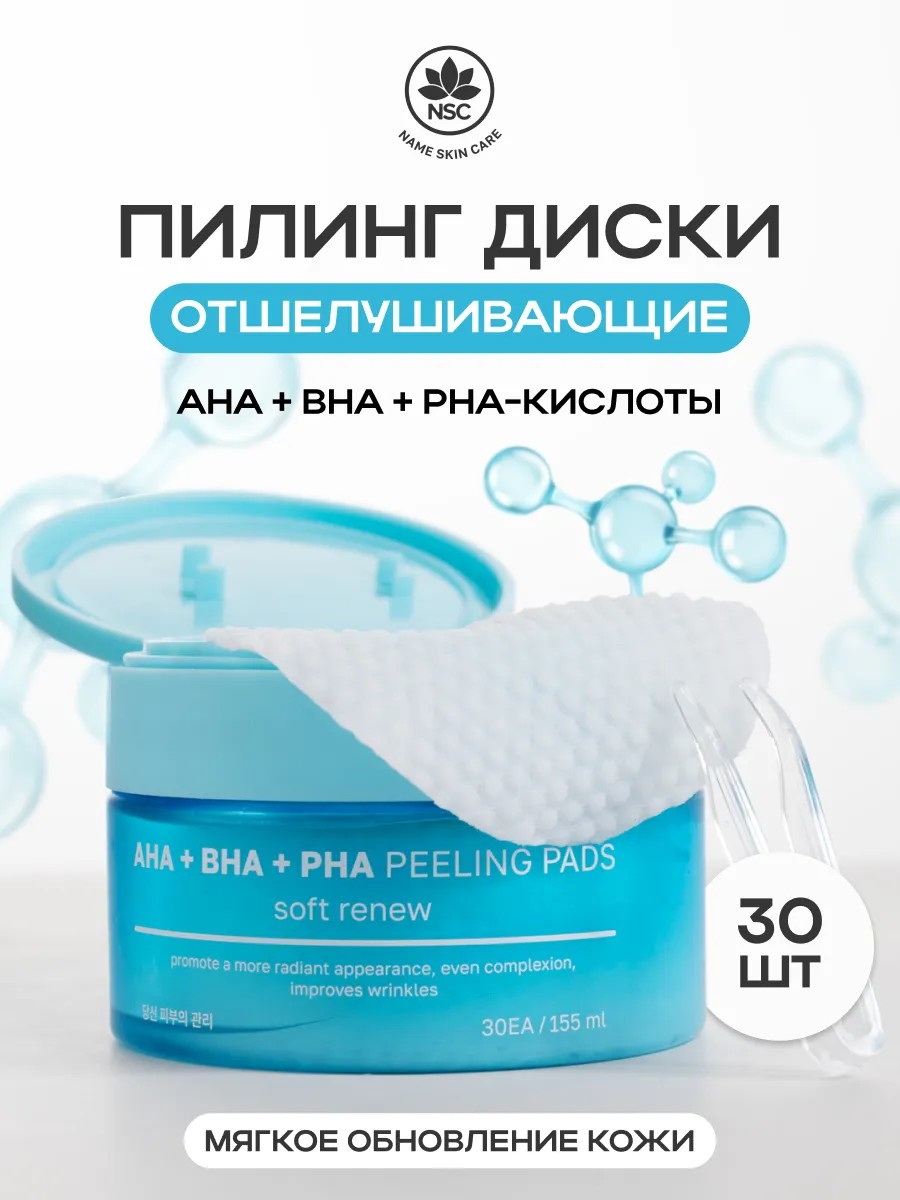 Отшелушивающие пилинг пэды ( диски ) с AHA, BHA и PHA кислотами NAME SKIN CARE устраняют несовершенства кожи и обеспечивают интенсивный уход для более ровного и гладкого цвета кожи, помогают очистить поры, удаляя омертвевшие клетки и загрязнения. Придают коже сияние и при каждом применении систематически устраняют неровности, расширенные поры.AHA-кислоты (молочная, гликолевая, лимонная, яблочная, винная) разглаживают мелкие морщины и уменьшают выраженность пигментных пятен. BHA-кислота (салициловая) очищает поры от кожного сала и грязи. PHA-кислоты (глюконолактон, лактобионовая) укрепляют кожный барьер и защищает кожу от раздражения.