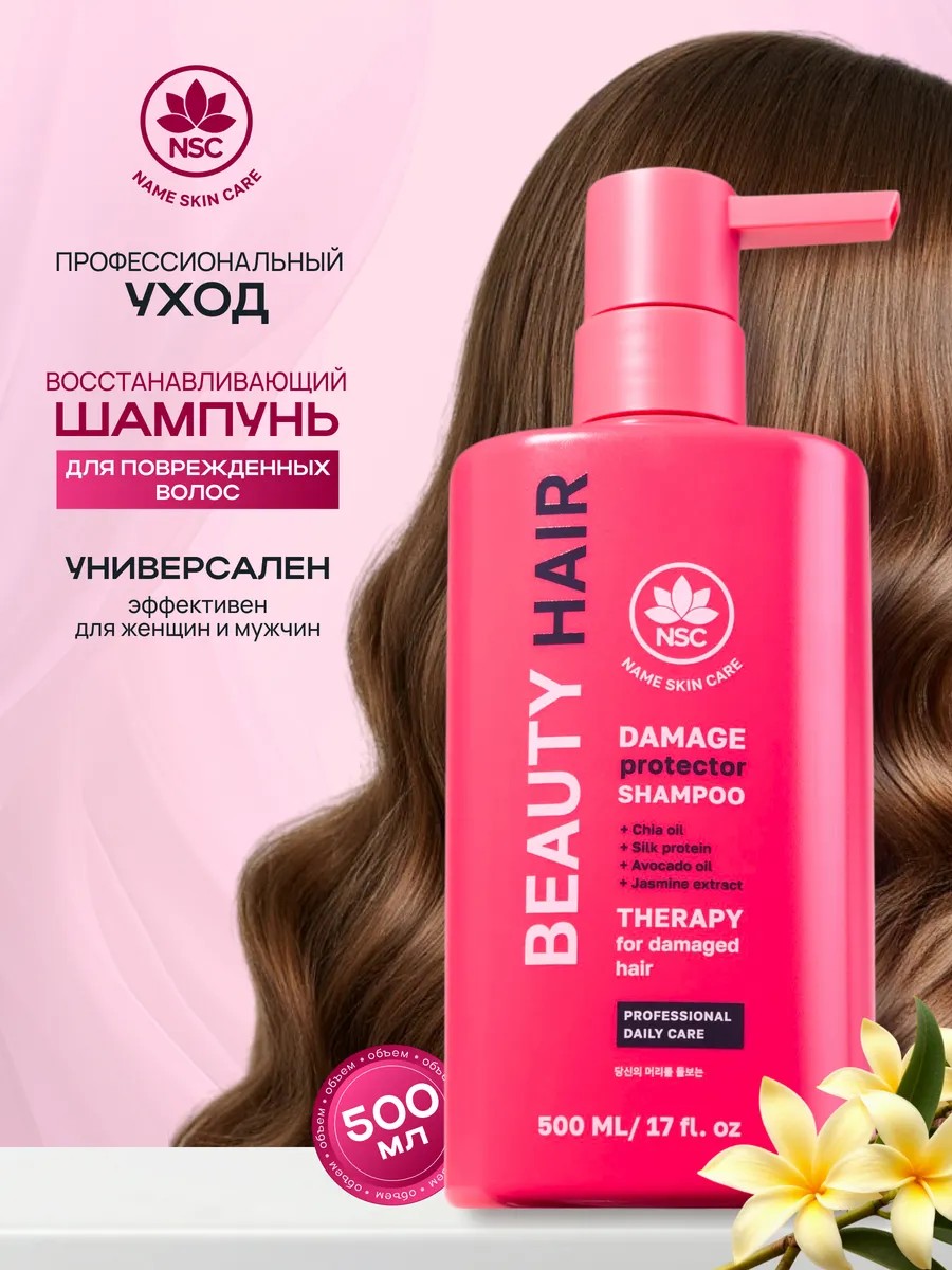 Name Skin Care Shampoo restores the scalp and hair follicles, protecting against premature hair loss. It gently cleanses, prevents dryness and brittleness, restores the cuticle of damaged hair, and facilitates combing and styling. Silk proteins restore natural shine, smoothness, and softness, making combing and styling easier and protecting porous hair from excess moisture. Organic chia and avocado oils restore damaged hair, intensively moisturize curls, smoothing and enhancing shine. Peppermint extract has a soothing and toning effect, restores damaged curls, and normalizes sebum production. Jasmine extract eliminates dryness, moisturizes, strengthens, and makes hair manageable and silky. Directions: Apply shampoo to damp hair, lather, and massage thoroughly for 2-3 minutes. Rinse with warm water. Ingredients: AQUA, SODIUM LAURETH SULFATE, SODIUM CHLORIDE, COCAMIDOPROPYL BETAINE, COCAMIDE DEA, GLYCERIN, CHIA SEED OIL, SILK PROTEIN, PANTHENOL, PHENOXYETHANOL, POLYQUATERNIUM-7, MENTHA ARVENSIS LEAF EXTRACT, BORAGO OFFICINALIS EXTRACT, PERSEA GRATISSIMA (AVOCADO) OIL, SALVIA OFFICINALIS (SAGE) LEAF EXTRACT, JASMINUM OFFICINALE (JASMINE) EXTRACT, CHAMOMILLA RECUTITA (MATRICARIA) FLOWER EXTRACT, LAVANDULA ANGUSTIFOLIA (LAVANDER) FLOWER EXTRACT, MONARDA DIDYMA LEAF EXTRACT, MENTHA PIPERITA (PEPPERMINT) LEAF EXTRACT, C12-15 PARETH-3, GLYCOL DISTEARATE, GUAR HYDROXYPROPYLTRIMONIUM CHLORIDE, DIMETHICONE, HYDROXYETHYLCELLULOSE, CITRIC ACID, POLYQUATERNIUM-10, PARFUM.